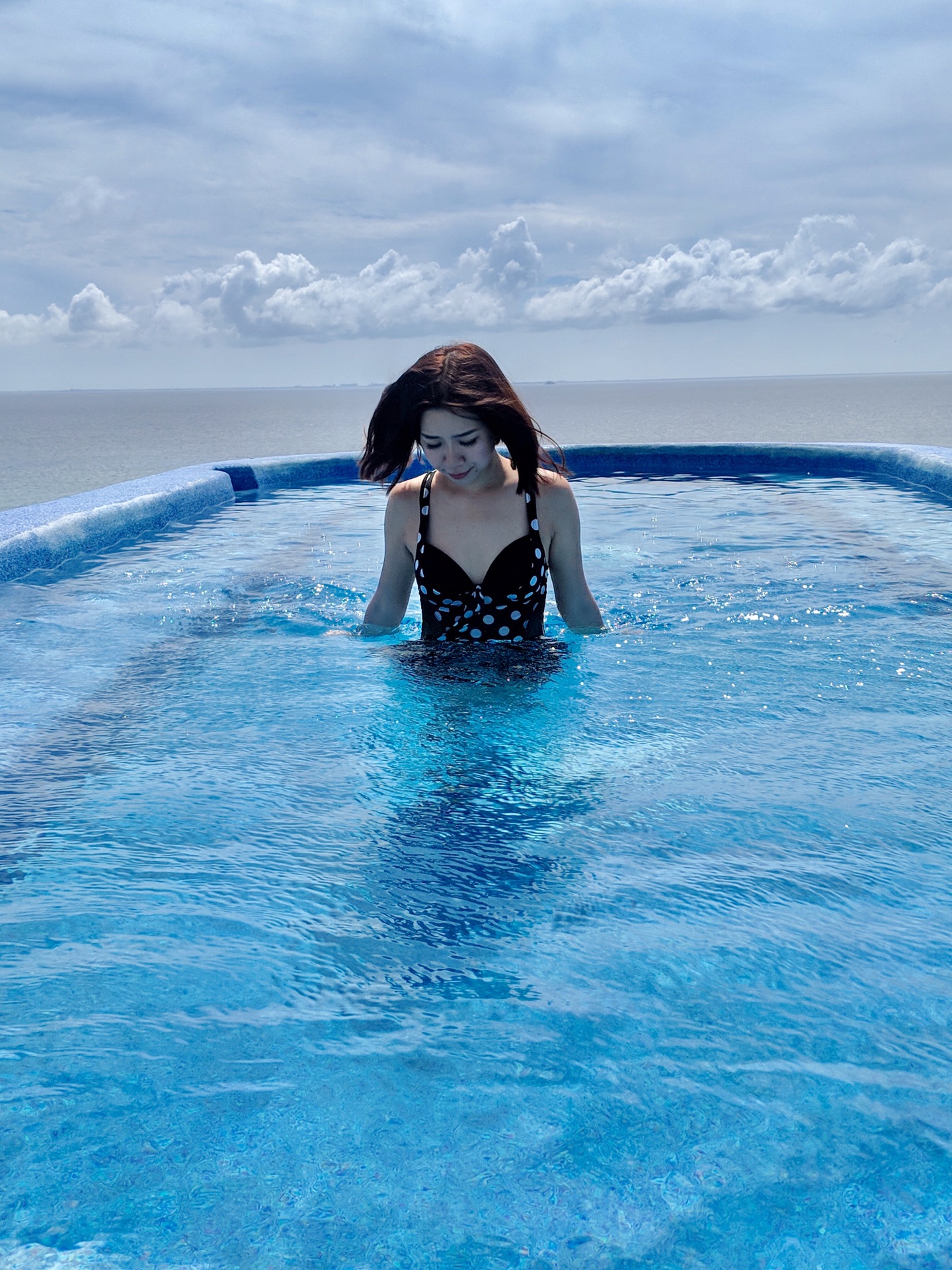 可以去靠近泳池的位置,我们去的时候有点雷阵雨,服务员怕坐的太边上雨会飞进来就没让我们坐。