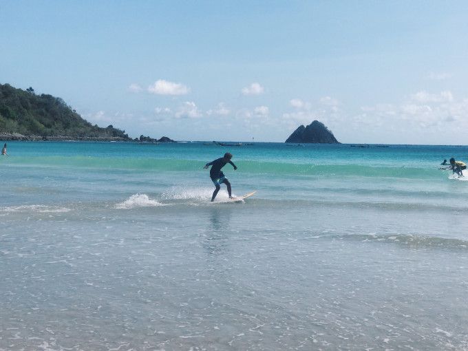 经过一段陡坡的路程,就来到selong了。柔细的白沙,广阔的海滩伴着周围小岛的美景,最美好的是,并不拥挤~ 这里是很适合学冲浪的地方,浪约1m左右高,浪不会太大 ,海滩边有很多教冲浪的店家,具体价钱就没问了,看到蛮多境外人在这边学的。