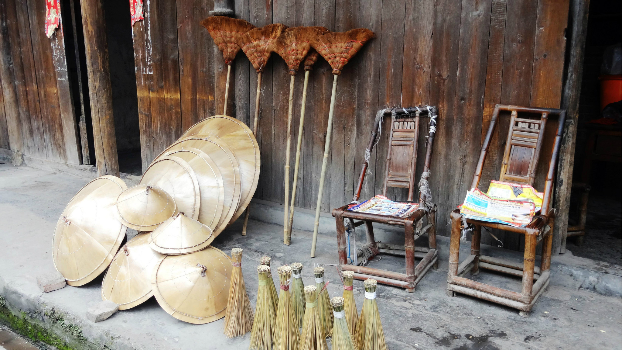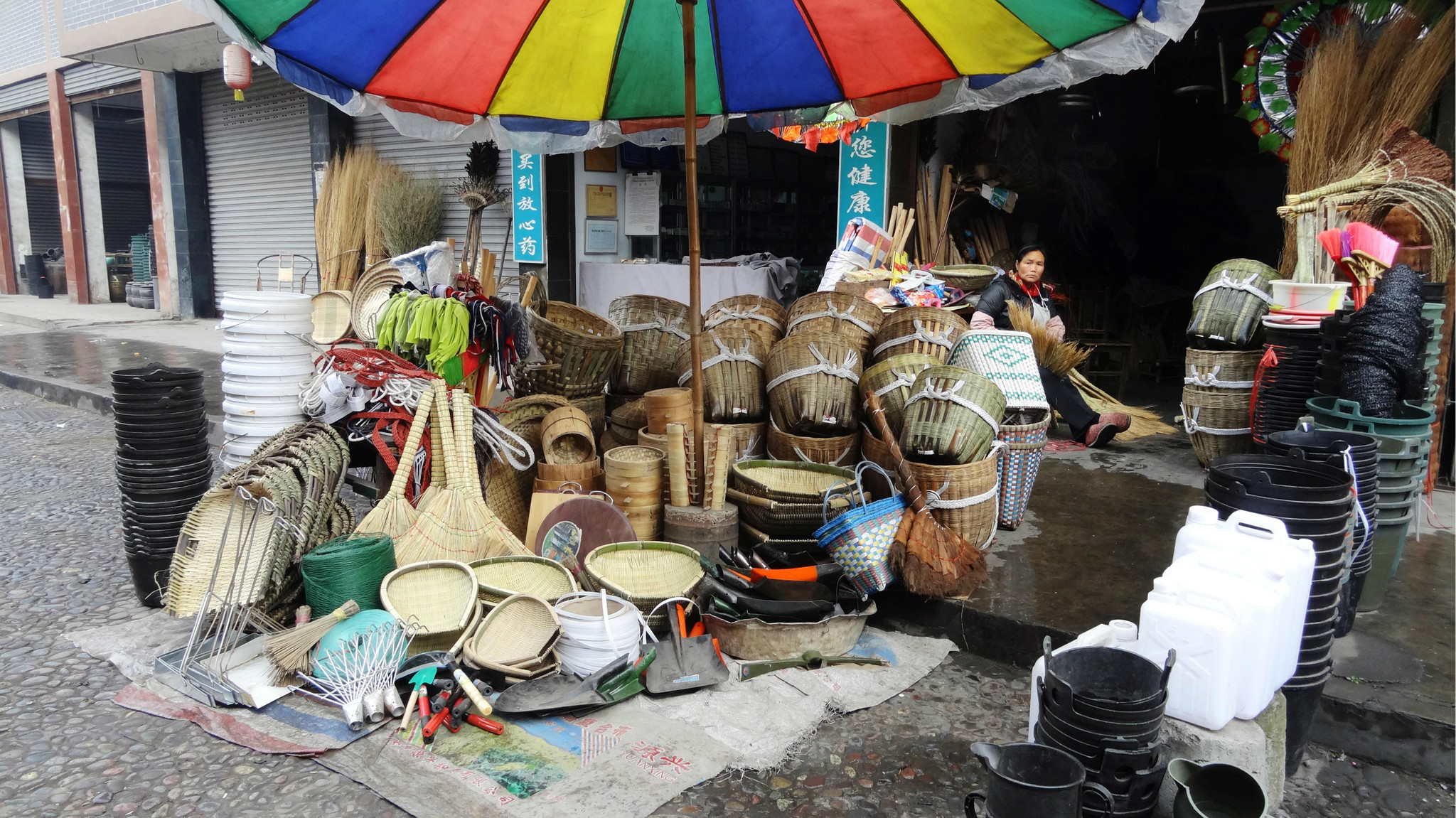 小镇保留了传统的手工艺。半边街头有四五家铁匠铺。那“呼隆”拉响的风箱和砧板上“叮叮口当口当”的敲击声,给寂静的小镇平添了些许悦耳的音符。接下去是十多家篾具店,用竹篾编的背篼、箩筐、斗笠、草扒、蒸笼等生活、生产用具摆了一条街。