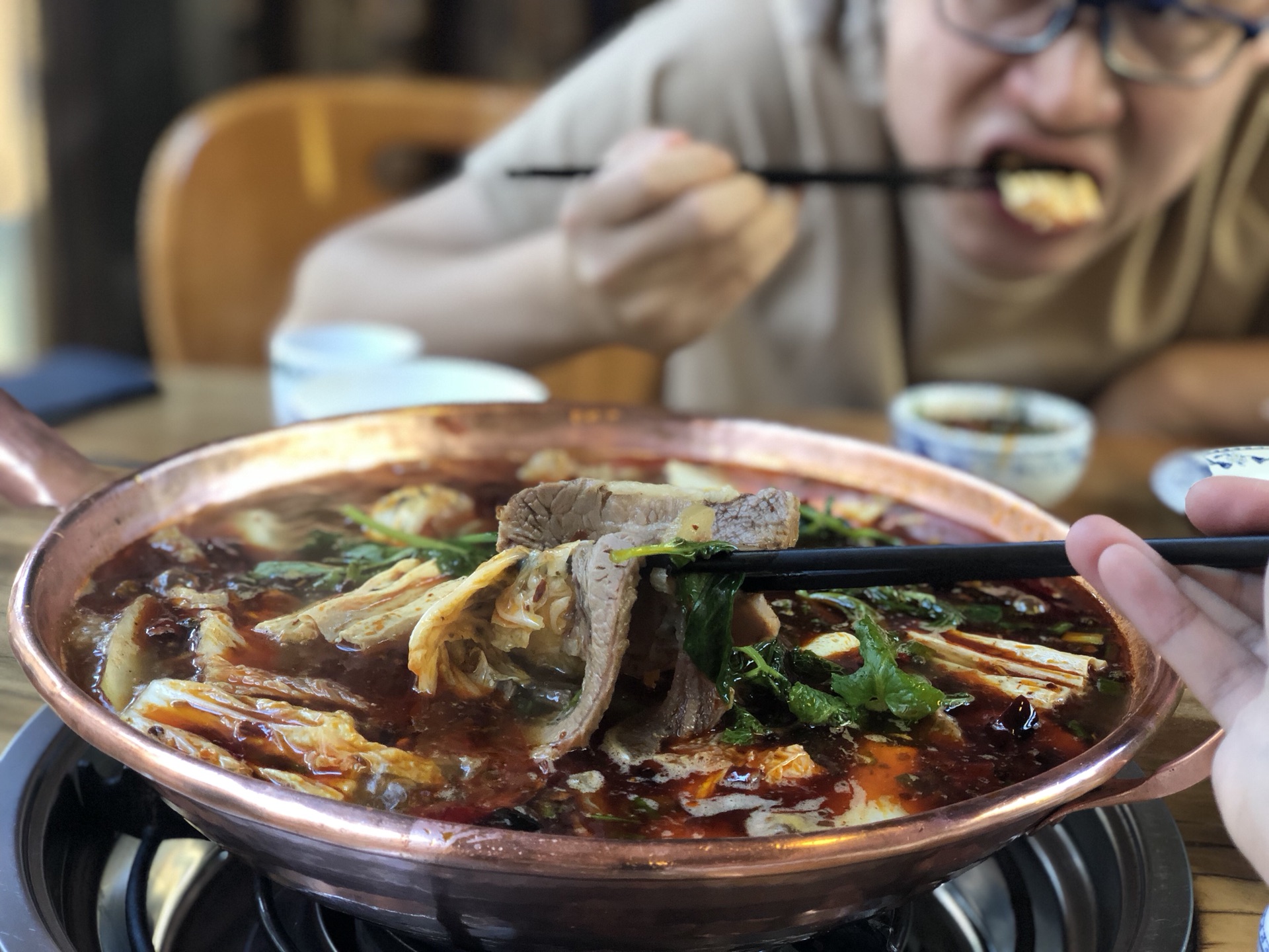 古镇的第一顿给了鼎鼎大名的铜瓢牛肉火锅,真真的好次!