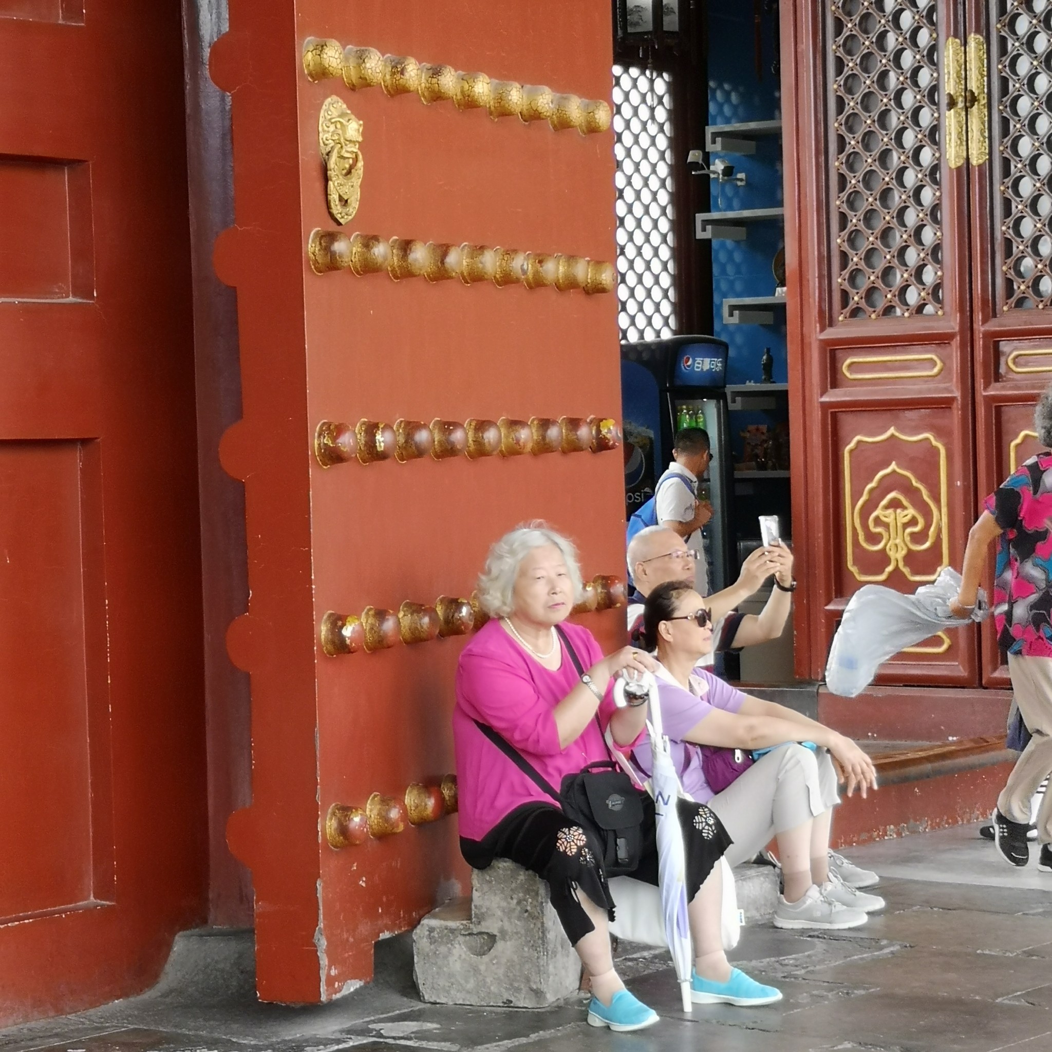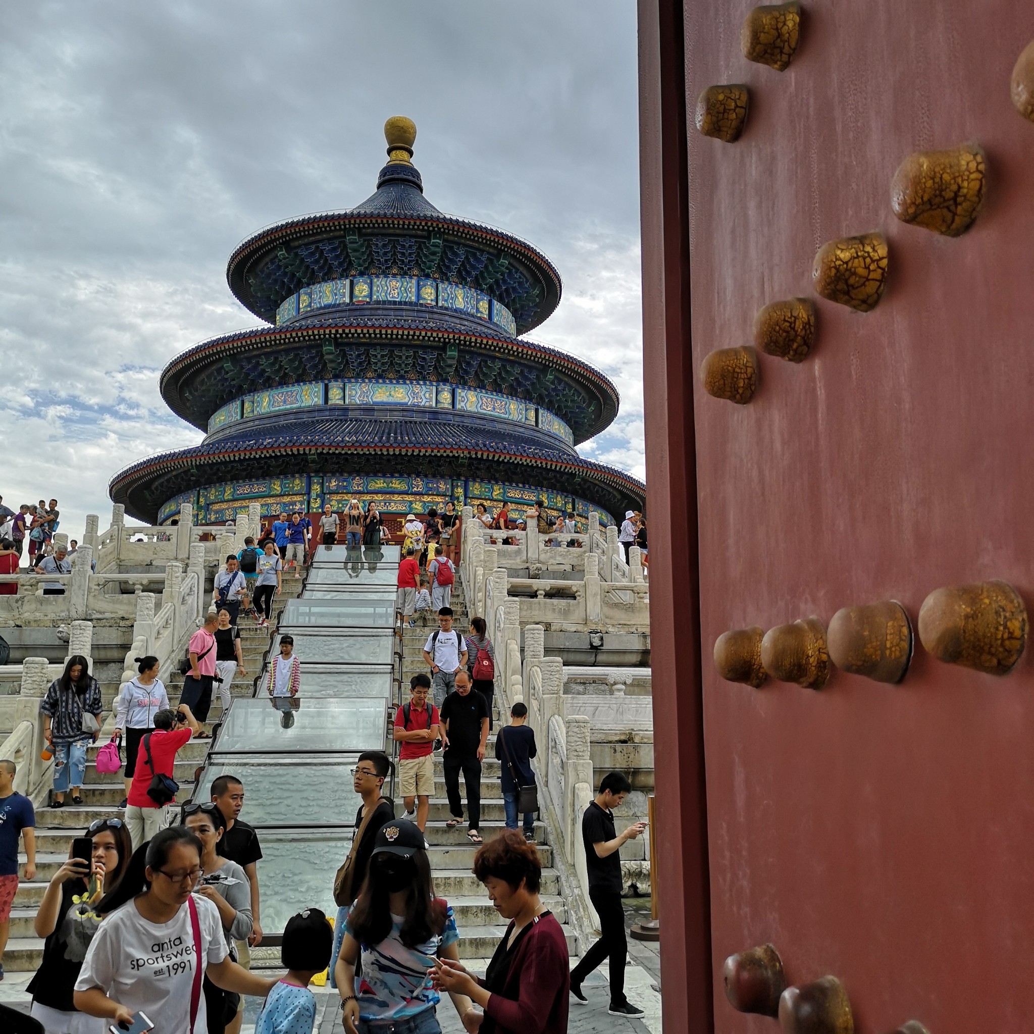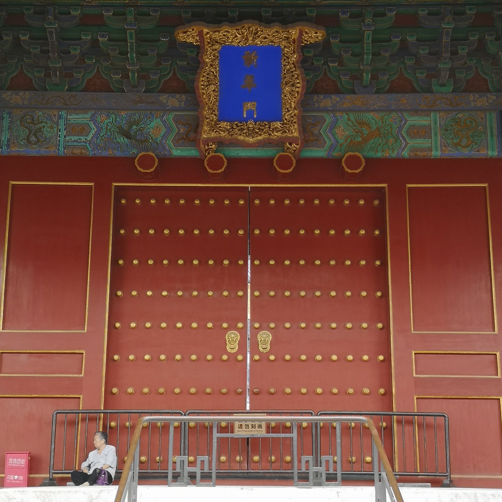祈年殿前神道上的丹陛石,据说,曾被游客塞了很多硬币而遭损坏,现在还在维修中。