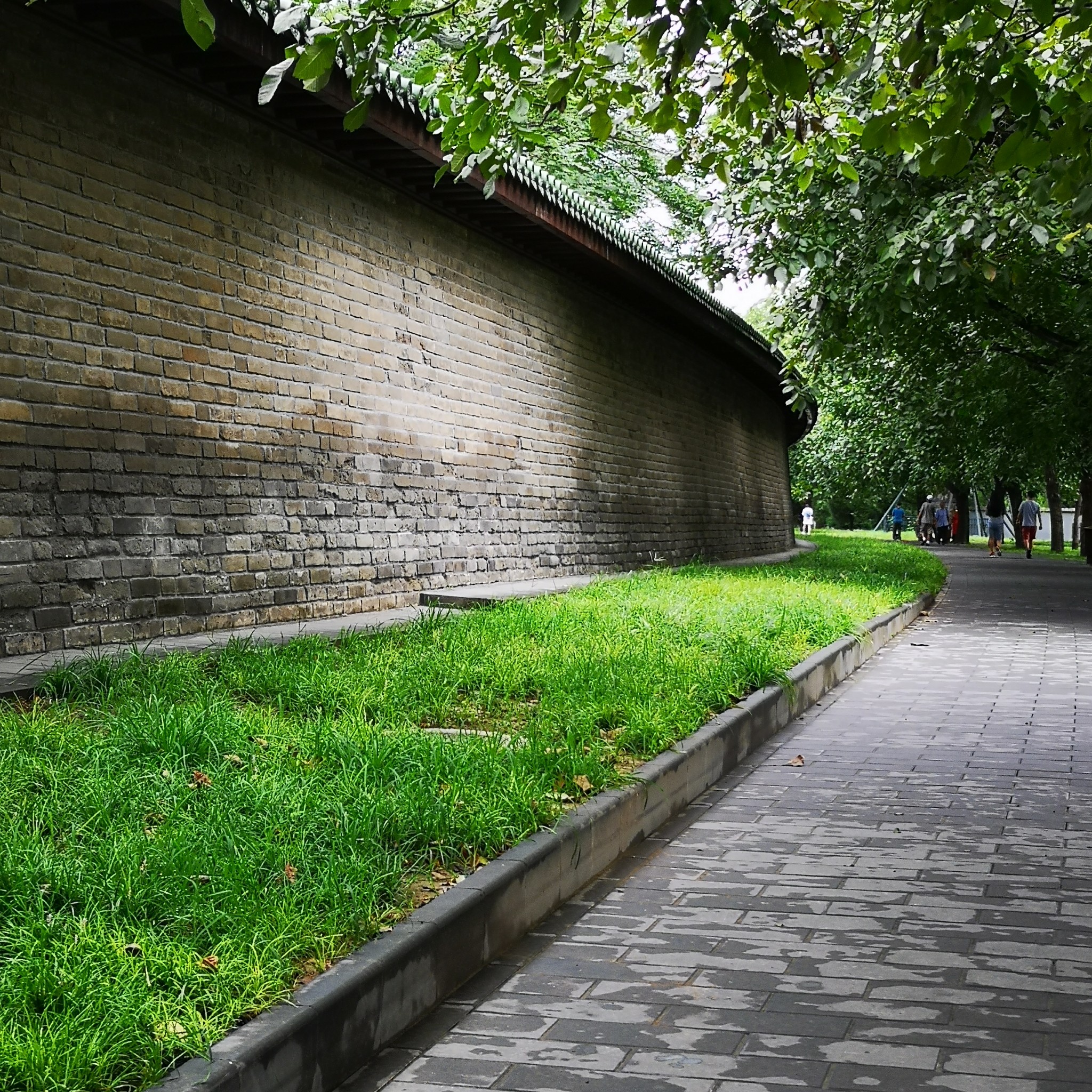 天坛有两重坛墙,形成内、外坛,坛墙北圆南方,象征天圆地方。