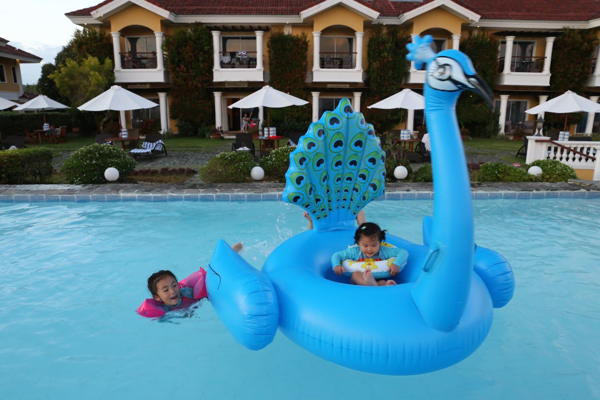 回到本岛,入住一家略偏但足够摆拍一天的隐世酒店——孔雀园。这家酒店是德国人开的,古老的欧式建筑,壁画,浮雕,强烈的欧洲百年老店代入感,酒店的管理绝对欧式的严谨,一点不舒服都不会给你。房间很大,一楼阳台窗户直接出来就是泳池,酒店提供水上充气玩具,孩子们绝对玩得不亦乐乎。