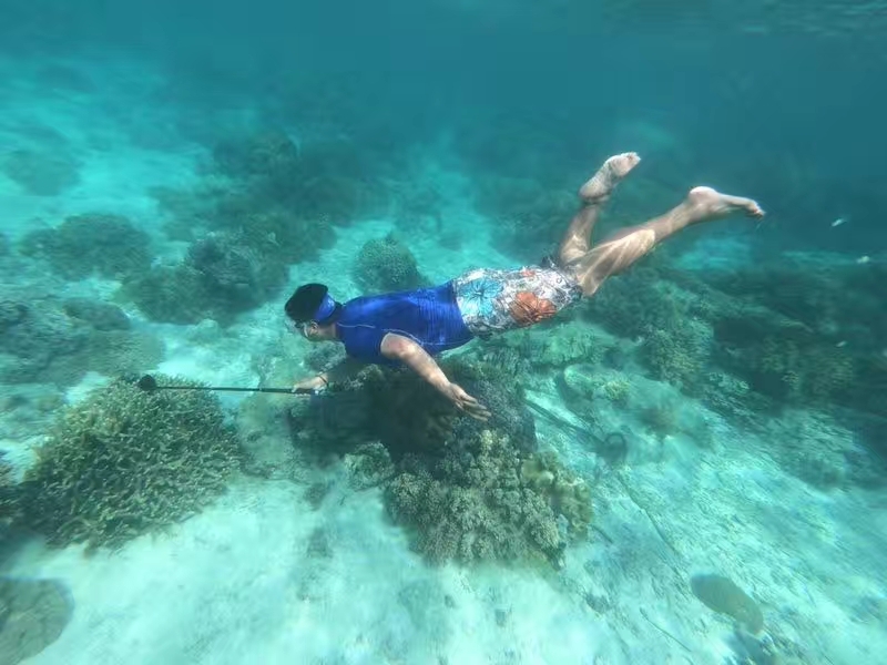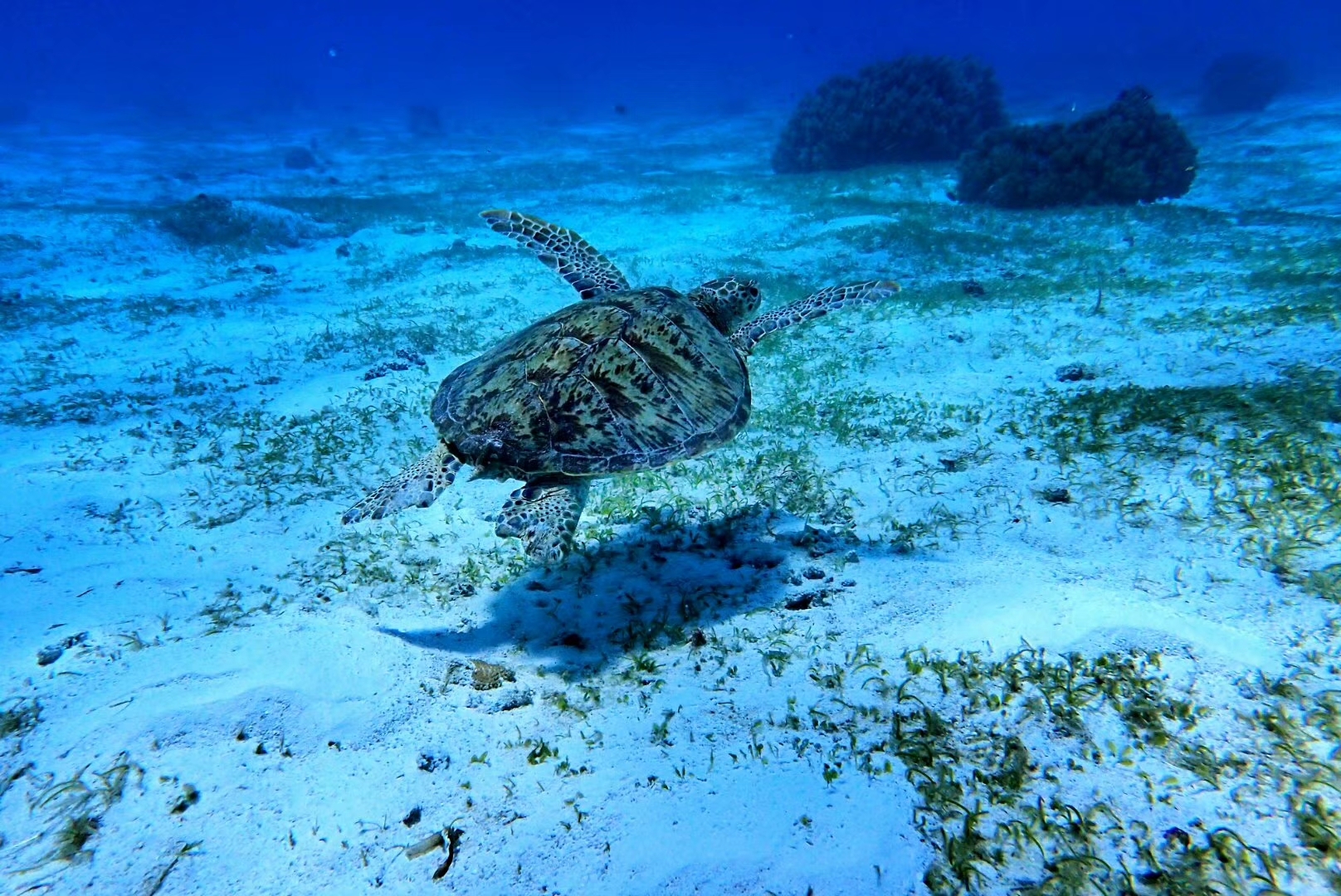 如果不玩深潜,肤浅的话看海龟还是很爽的,10米深海底沙滩清澈见底,海龟随处可见。不过做岛上住民的小船下海后再上船比较困难,即使有渔民压着船也容易翻。如果是从邦劳直接大船过来有船梯就比较方便了。