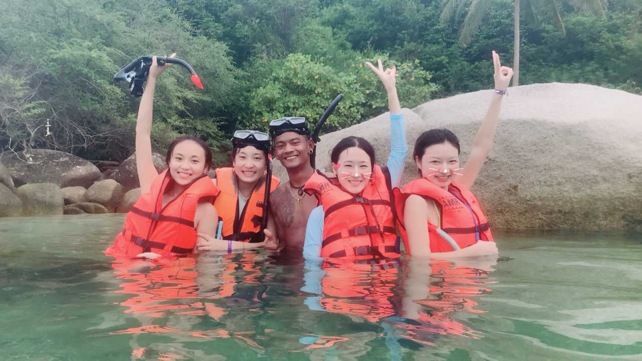 建议浮潜还是穿长袖,不要像我一样,穿个比基尼很容易被晒伤 。