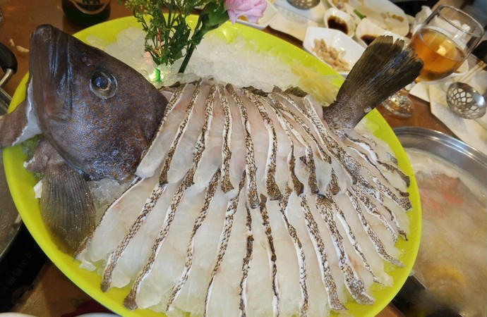 象拔蚌非常新鲜,刺身口感很脆,不喜欢刺身的放火锅里刷几下也是很不错的选择!东星斑自己刷有点控制不好节奏,应该蒸一蒸就完美了!酒店预订欢迎找闲蛋君哦!