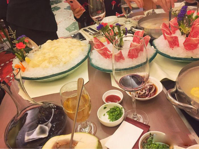 这家店是老店了,很多明星光临过,位置挺好的,就在新濠锋酒店的旁边,杭州街和宁波街交汇处。几个人搞了一个清汤锅,调料是自己调制。澳洲的雪花牛肉片很厚实和牛肉粒非常嫩,这两款牛肉都好吃。