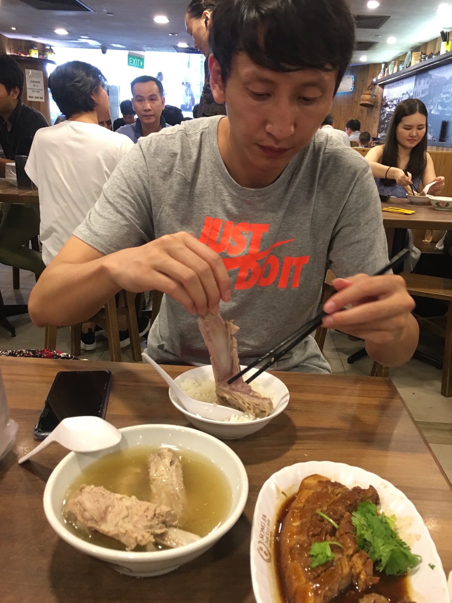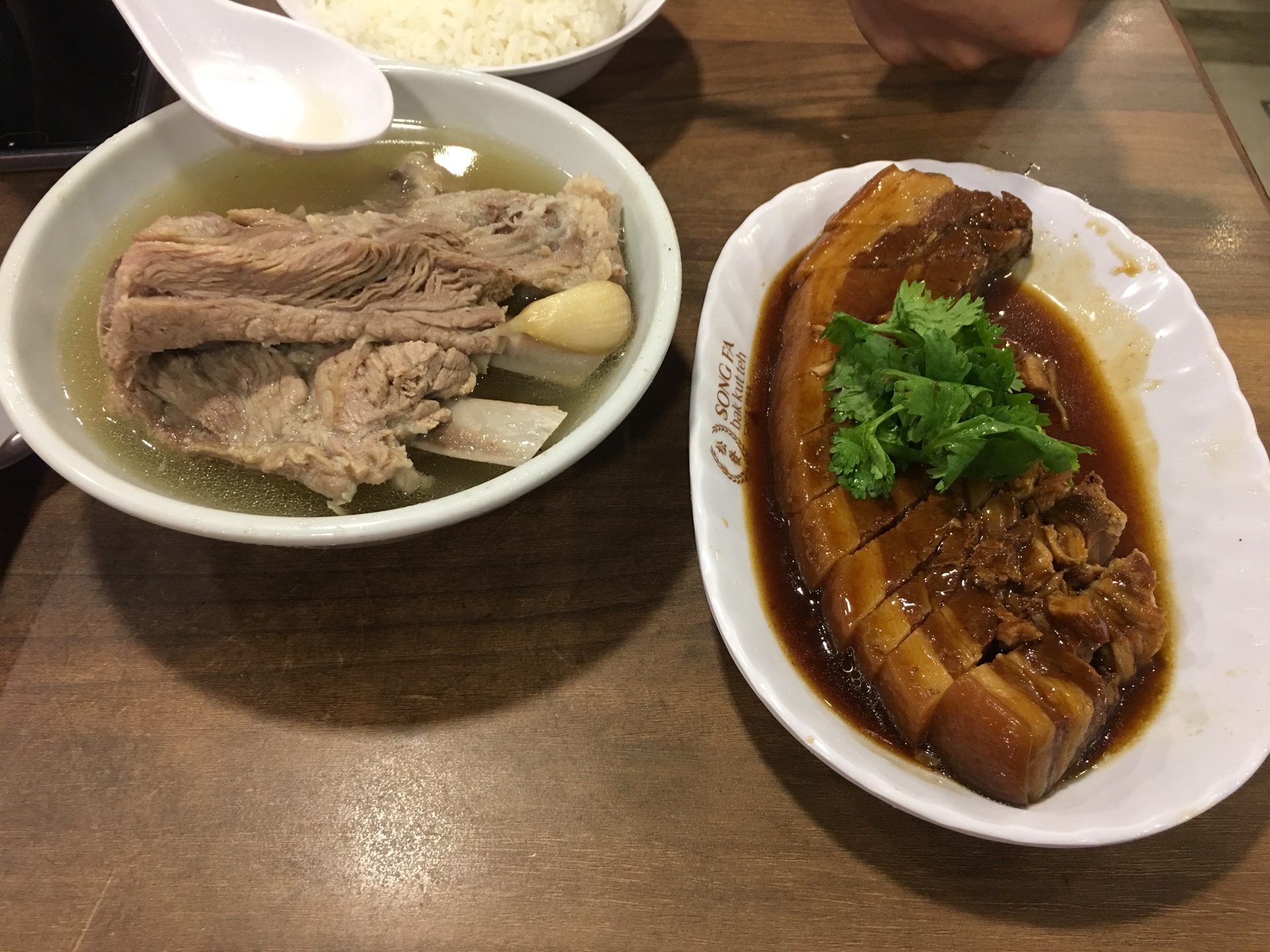不经意间,在离我们住宿很近的唐城坊发现一家松发肉骨茶,看网上说很有名,就进去尝了尝,猪排骨汤很浓郁,肉不老,有很浓的中药材味道,喝完还会不定时给加汤,热热的汤喝到胃里暖暖的。