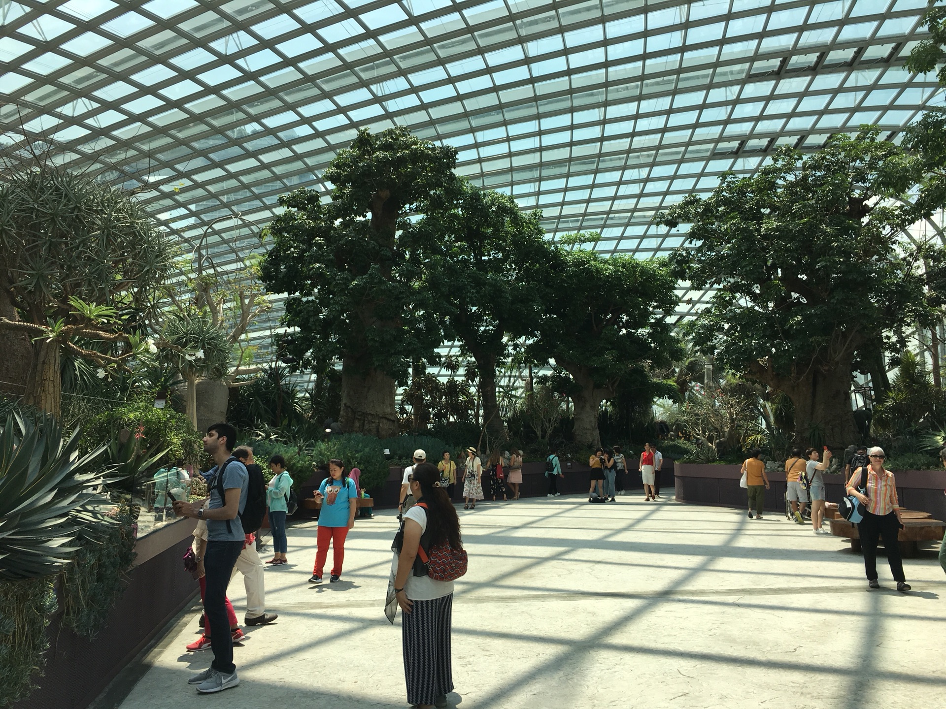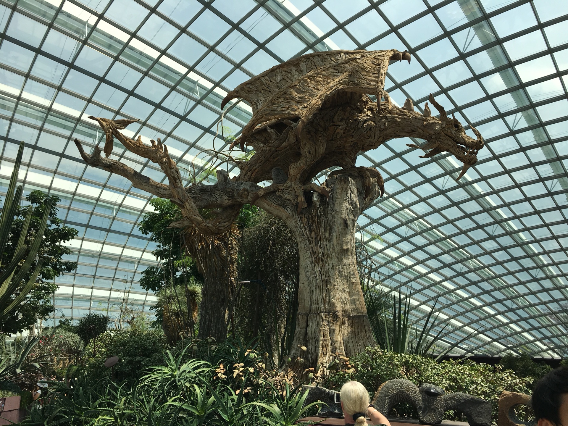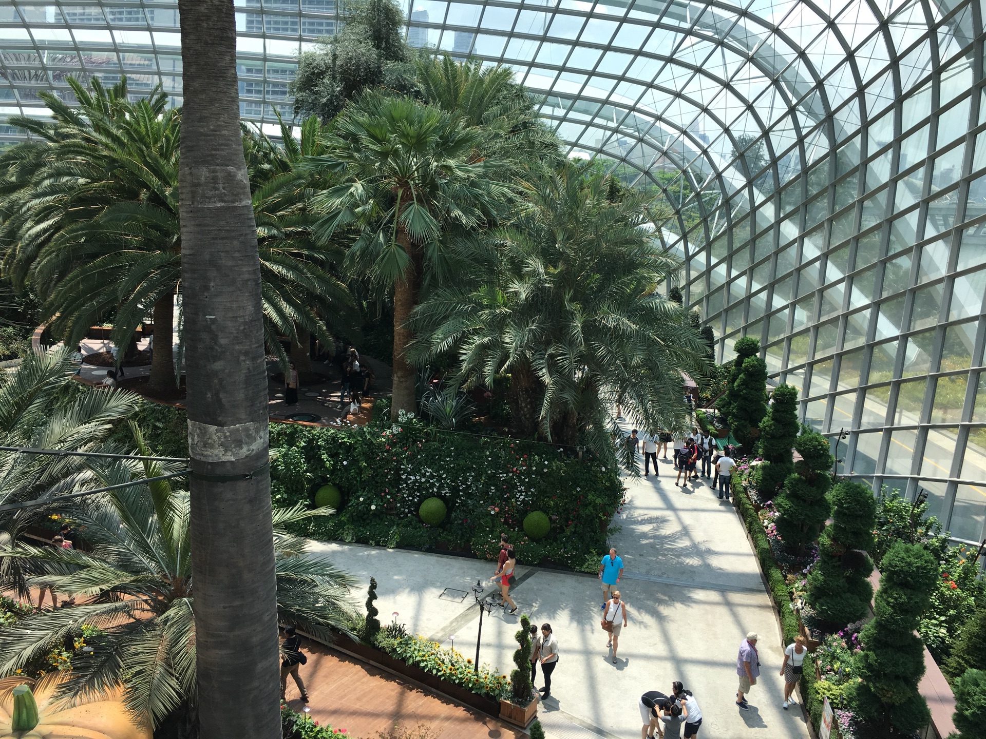 滨海湾花园分室内和室外,室外可以随意逛,室内有两个馆和空中步道要收费。从地铁下来的地方走到两个馆还是有点距离,加上天气炎热,我和谷先森最后选择坐电瓶车。