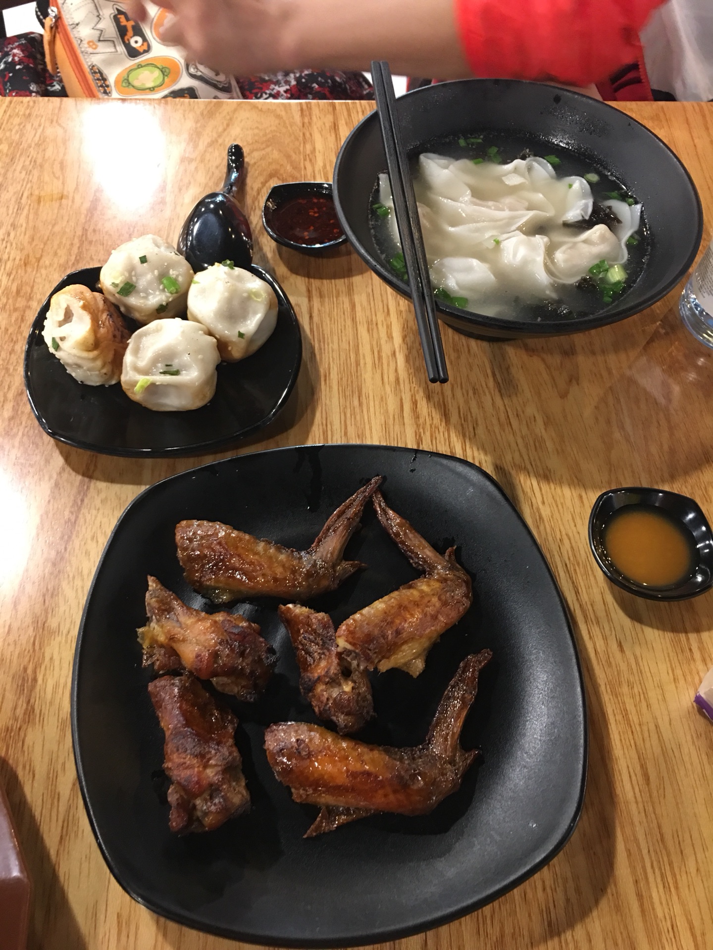 谷先森的下午饭鸡翅+生煎包,鸡翅有点干,生煎包我没吃。