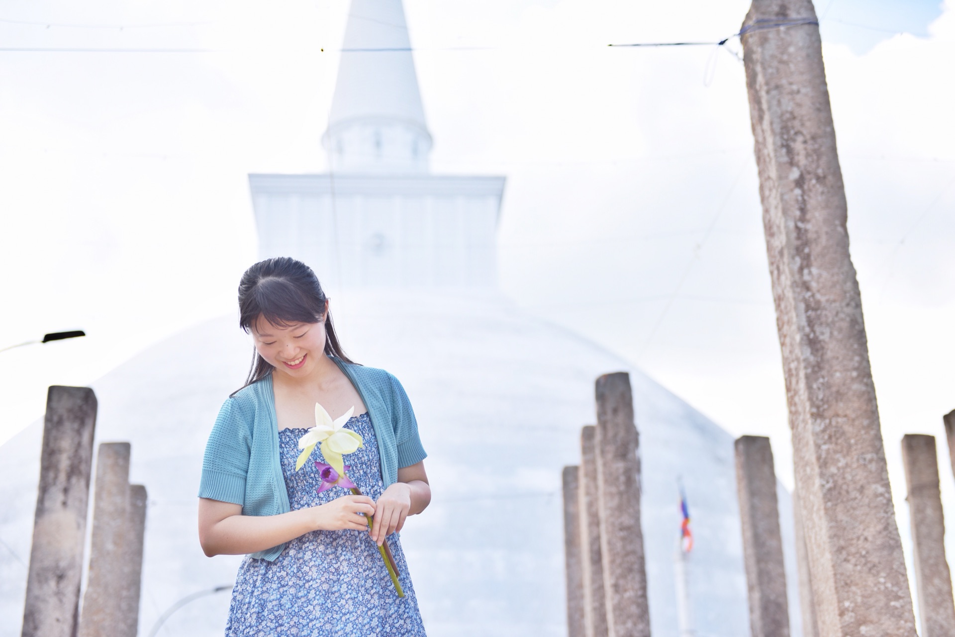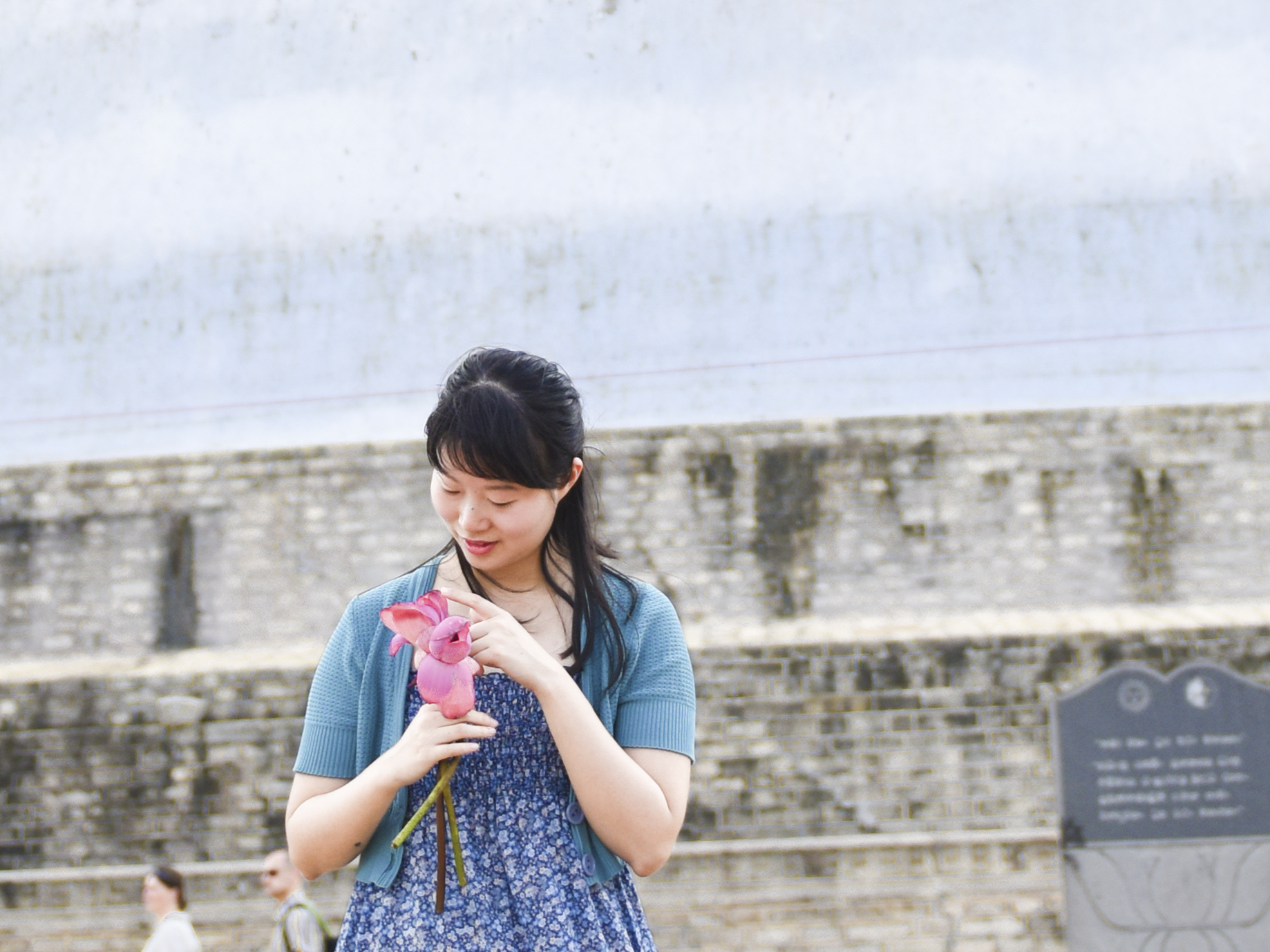 ↑ 一位老奶奶送给我们两支鲜花,带去虔诚。