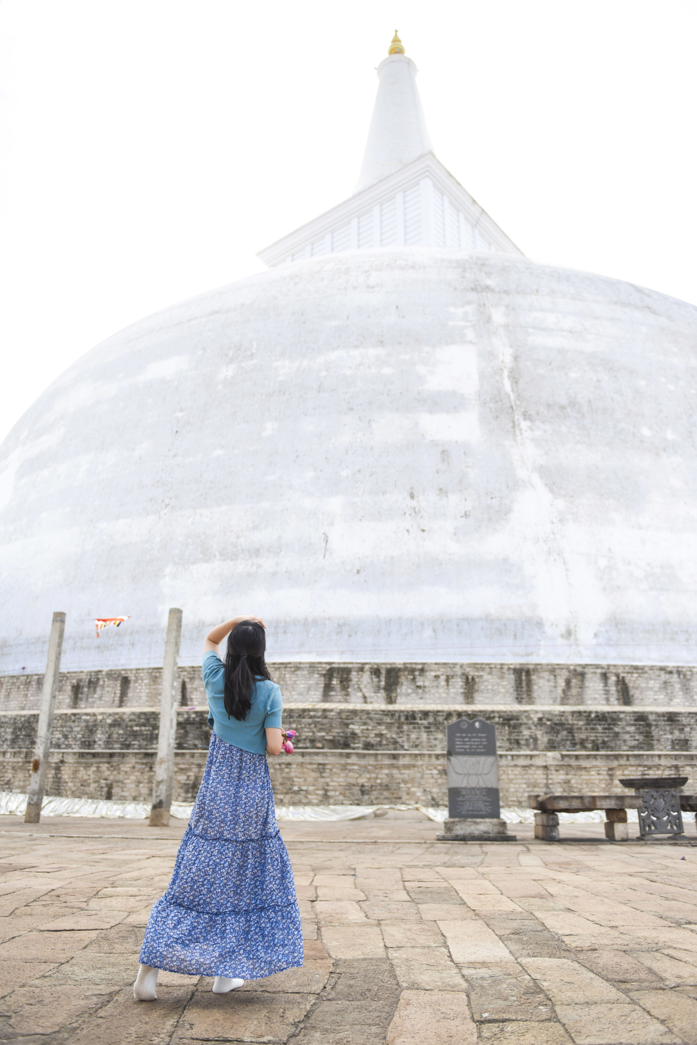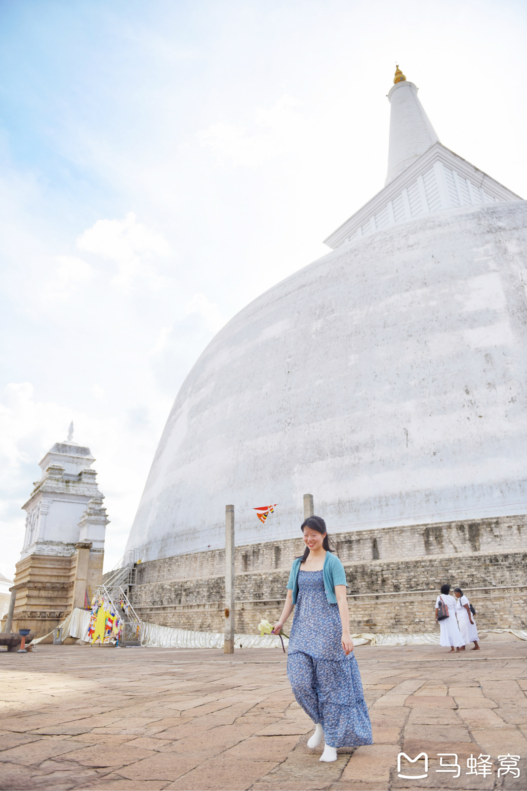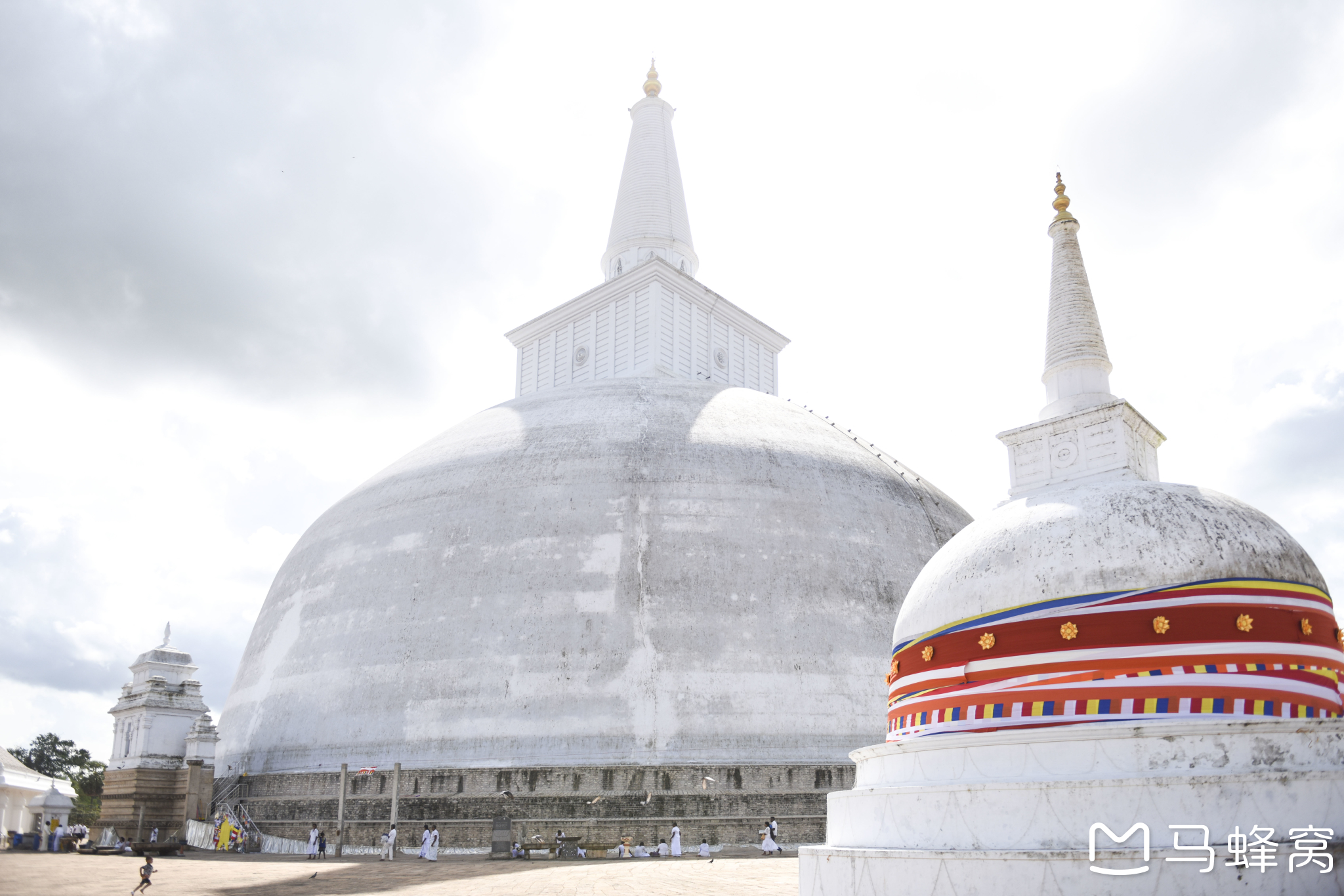 ↑ 鲁万维里萨亚舍利塔Ruvanvelisaya Dagoba,这里是虔诚的佛教徒朝圣的地方。对比人的尺度,这是一个巨大的白色舍利塔。尊重寺内的规定,再大的太阳也不能打伞,再烫的地都不能穿鞋。