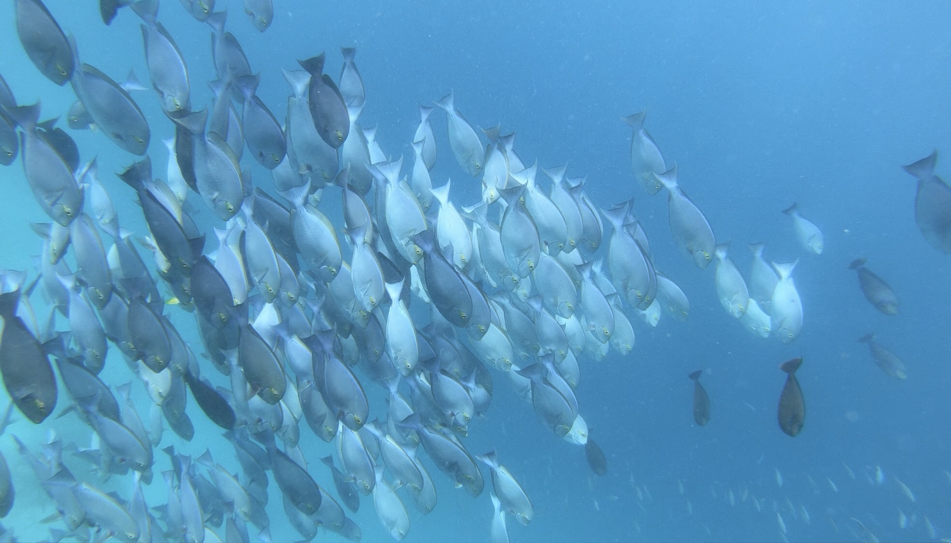 差不多20分钟后回到船上,休息休息,坐船头发现鱼都浮起来了,非常奇妙,里面还有魔鬼鱼