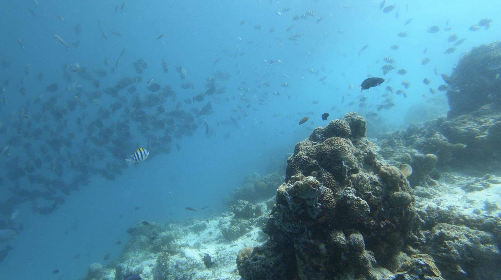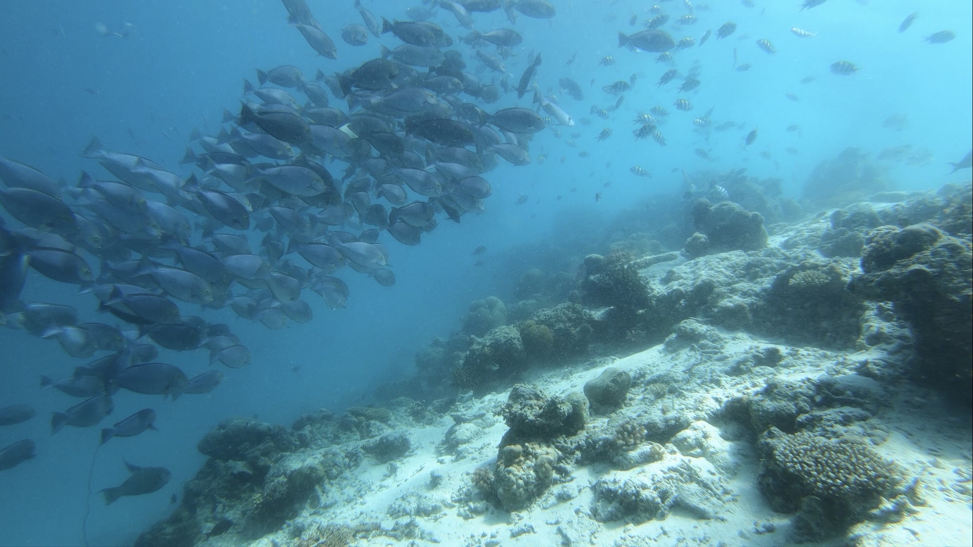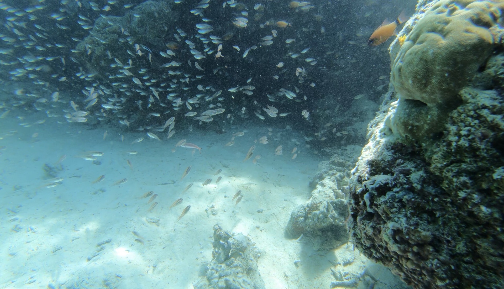刚下去确实很紧张,先在水面调整了一会,慢慢下去,面罩没有进水很庆幸,逼着自己呼吸正常,耳压平衡要提前做,我做得有些晚所以耳朵深处很疼,向教练示意后上浮点做了好几次才正常,继续下潜,这次终于看到了海下的样子。怎么形容呢?全新的世界,美轮美奂,一下子就被吸引住了,各式各样的鱼,五彩斑斓,就在身边自由地游着,感觉很美妙!这时必须拿出绑在手上的GoPro记录下这一刻!