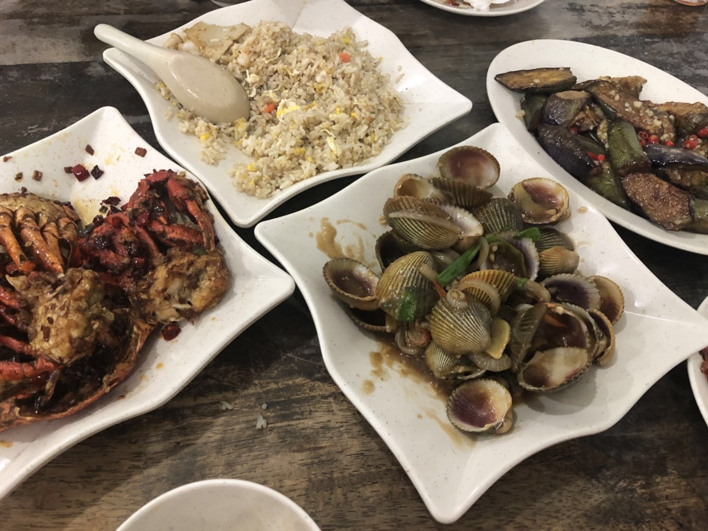 回酒店洗漱敷面膜,然后依然新口味走起,今天的菜更惊喜,蒜蓉茄子,海鲜炒饭,香辣肉蟹,葱姜鸡腿蛤,每个都超好吃,仅仅耗资50RM