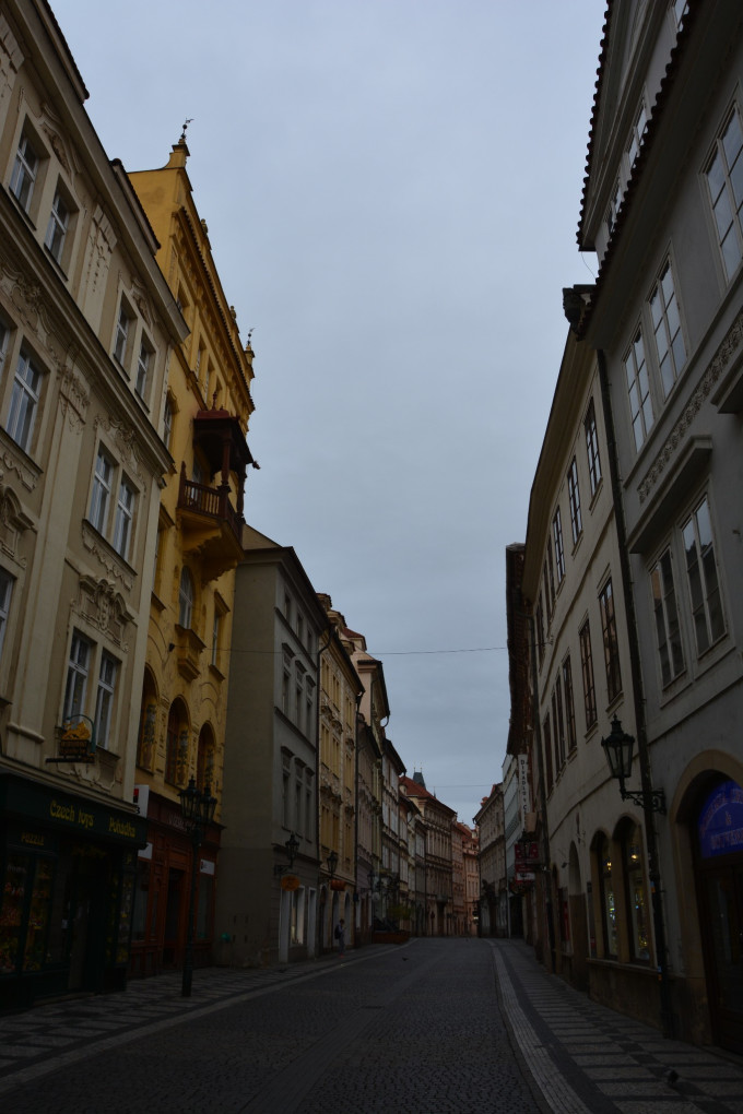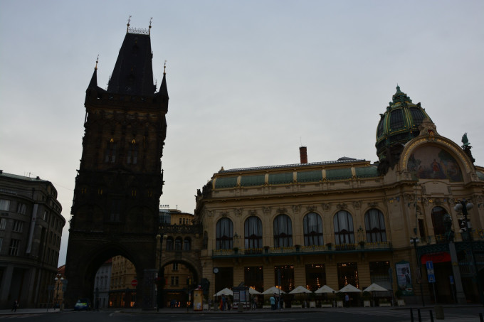 既然出都出来了,就没有再回酒店去睡回笼觉的道理,下榻的酒店距离火药塔很近,走路不过十分钟光景。我就在这座始建于1475年,后来又被改成哥特风格的塔楼附近徘徊了将近半个小时,把它从上到下观摩了个遍,等到天色渐亮后,才正式迈过火药塔,走进布拉格老城的区域,这就像是一种仪式,适用于像我这种比较矫情的文艺老青年。