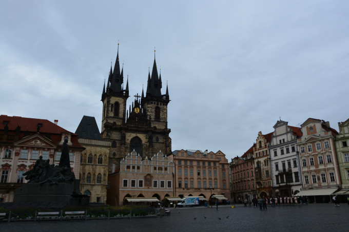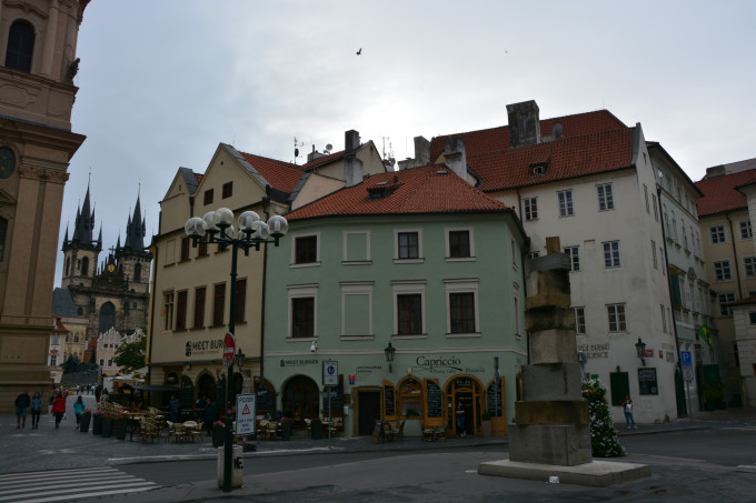 七点多钟的布拉格广场,游人很少,早起觅食的鸽子很多,当然说好的旭日东升也是没有的,歌曲里的许愿池也是骗人的,经过泰恩教堂时,老天爷还淅淅沥沥赏了一顿小雨,把我热烈拥抱蓝天白云下布拉格的心情冷酷的浇灭。一群说华语的女孩子穿着唱诗班的衣服,在清晨的布拉格广场拍各种集体照,一句“布拉格,我来了”说了几十遍,带队老师似乎还是不满意,我看就很好嘛,青春洋溢,惹人羡慕,要那么整齐划一干什么,要整齐就去看张大师的团体操啊。