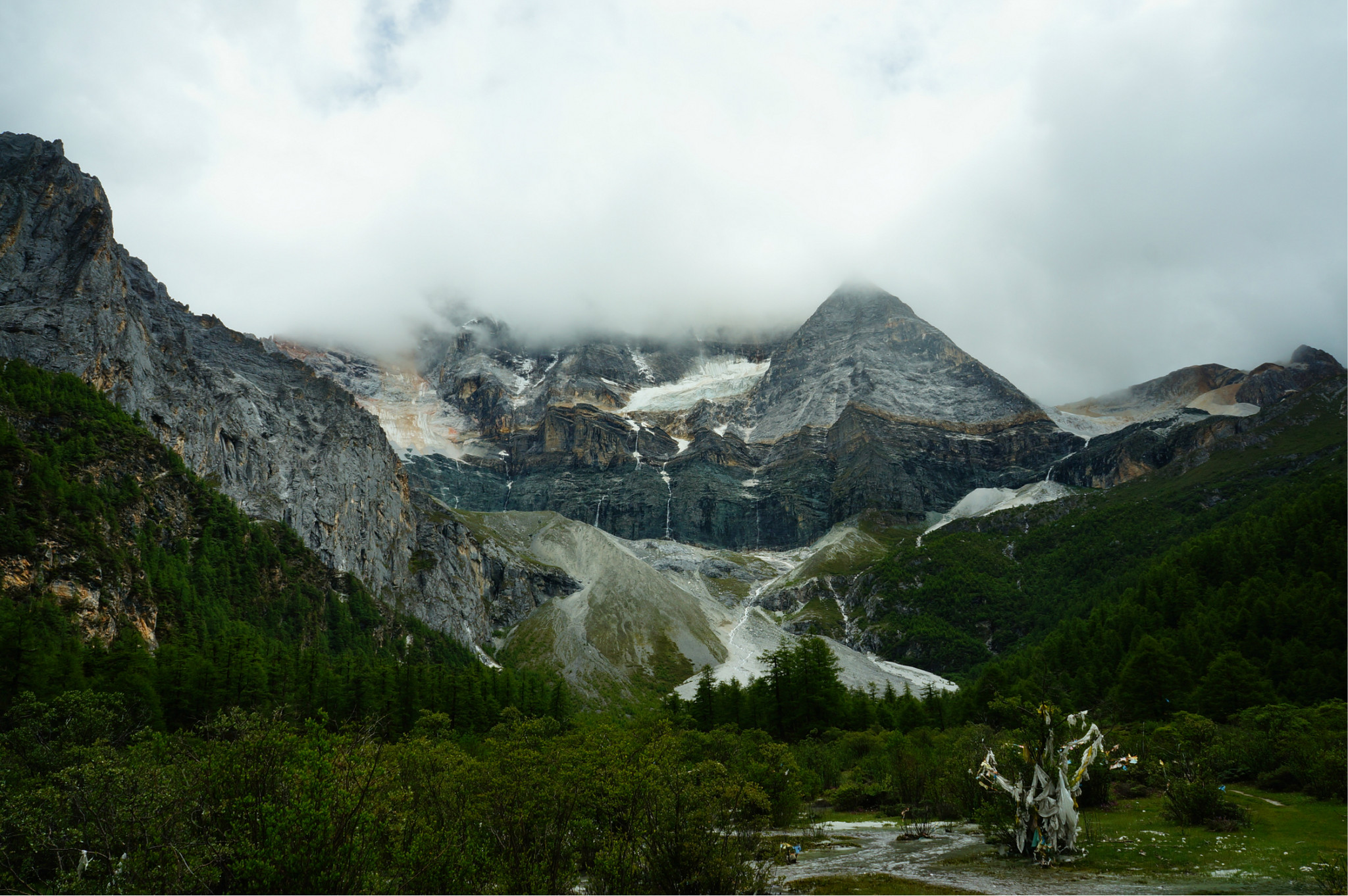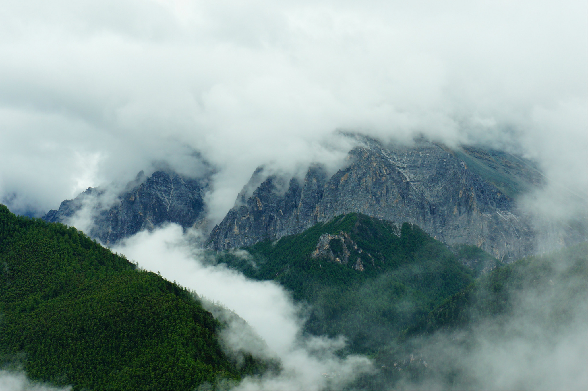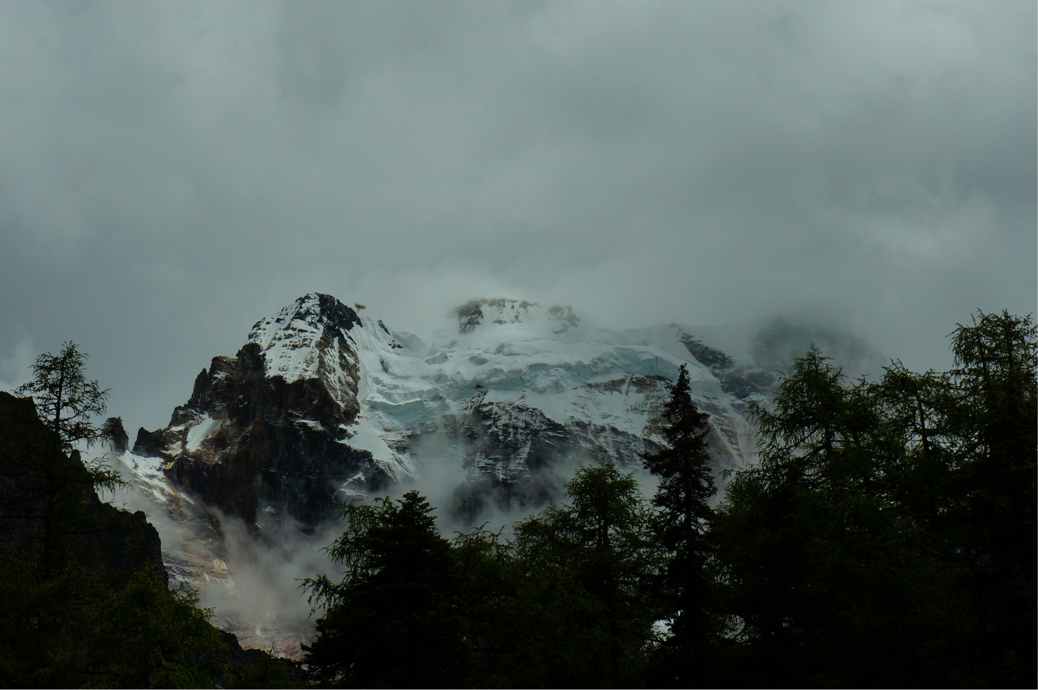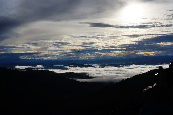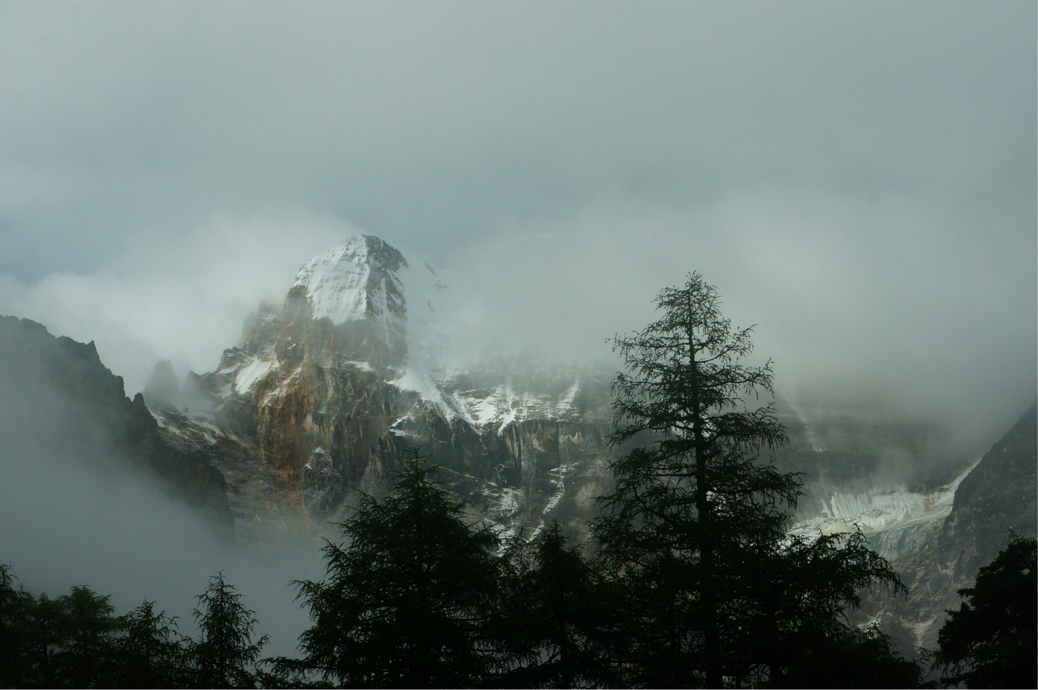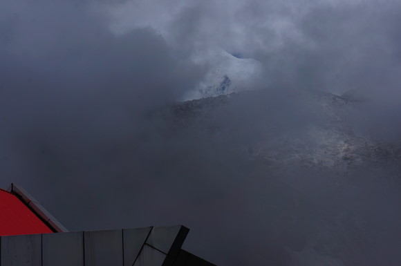 太阳出来,云雾却越来越厚。不过有时候能略微看到一点雪山,就一点点……