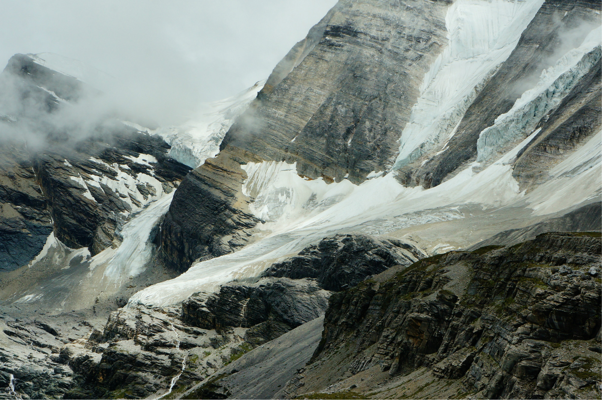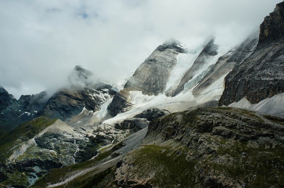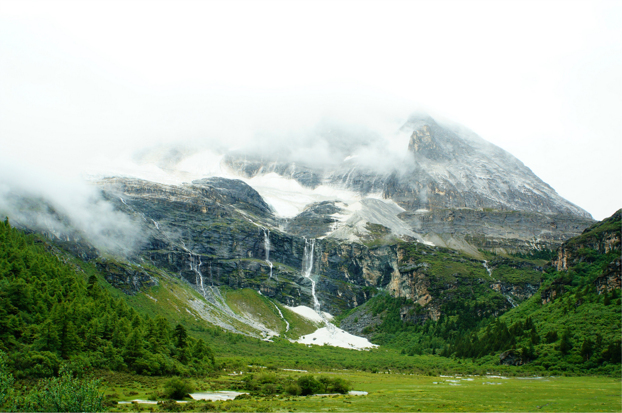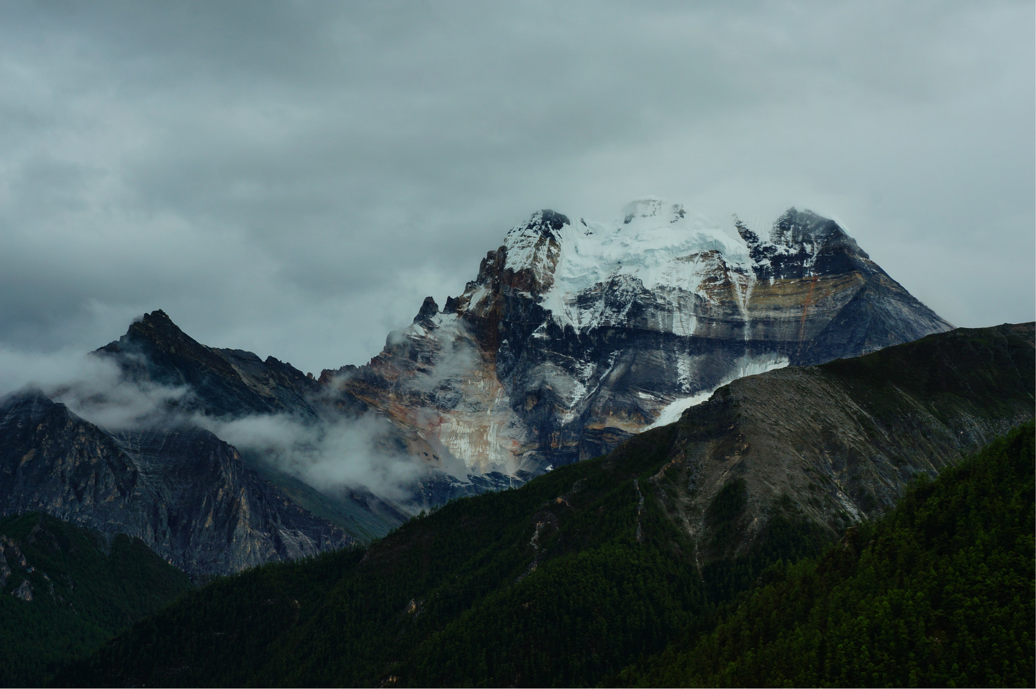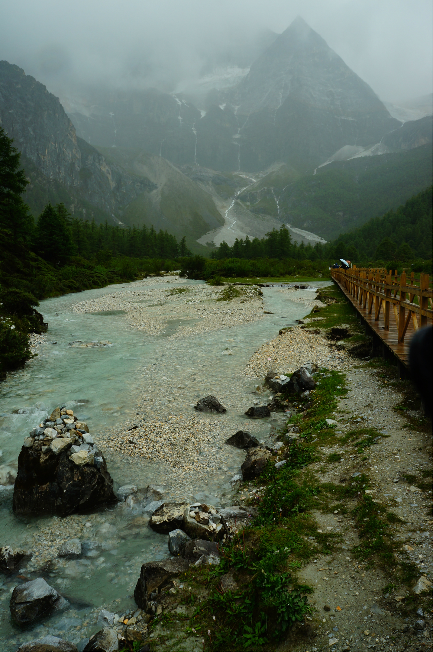 太阳出来,云雾却越来越厚。不过有时候能略微看到一点雪山,就一点点……