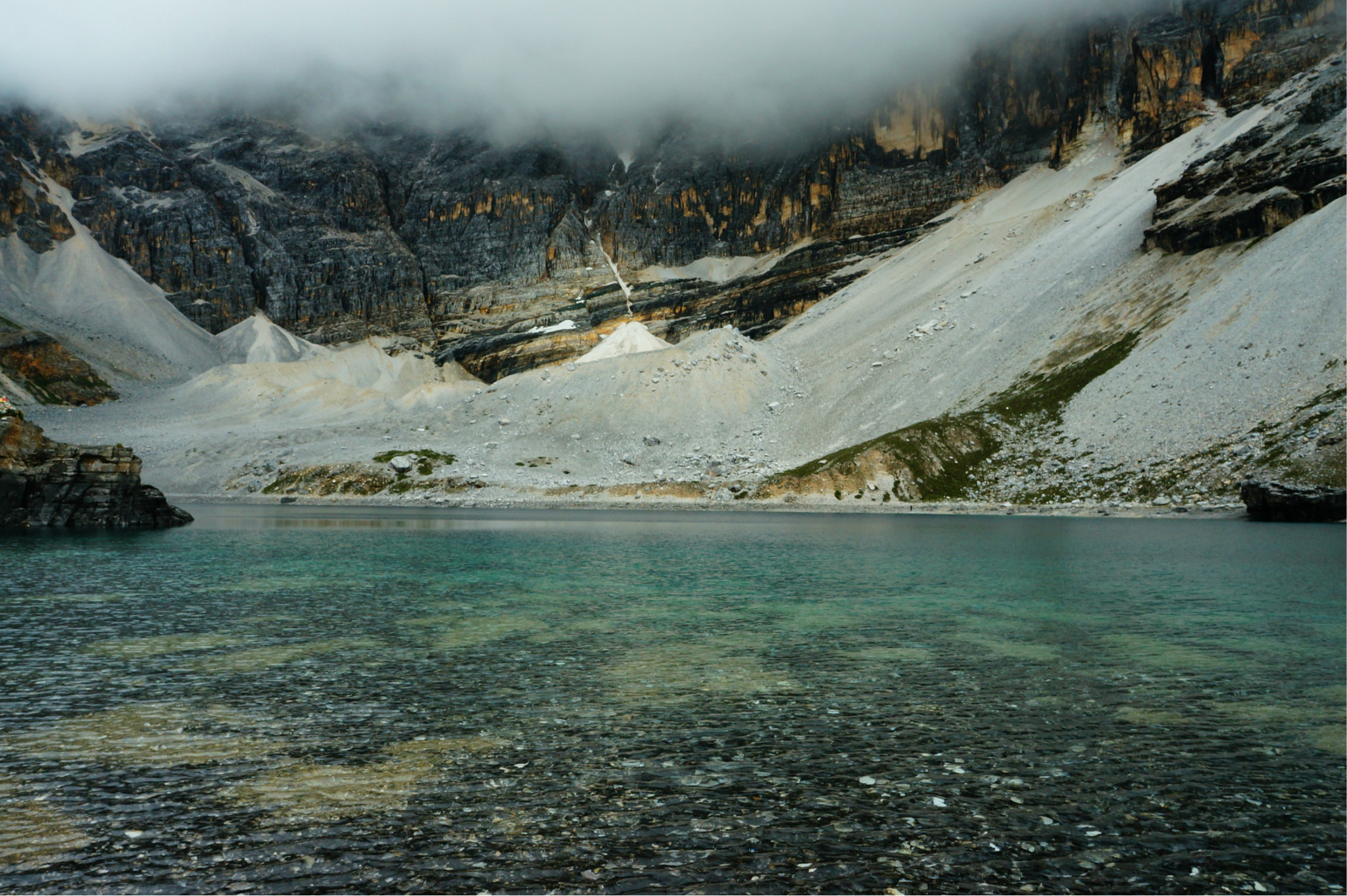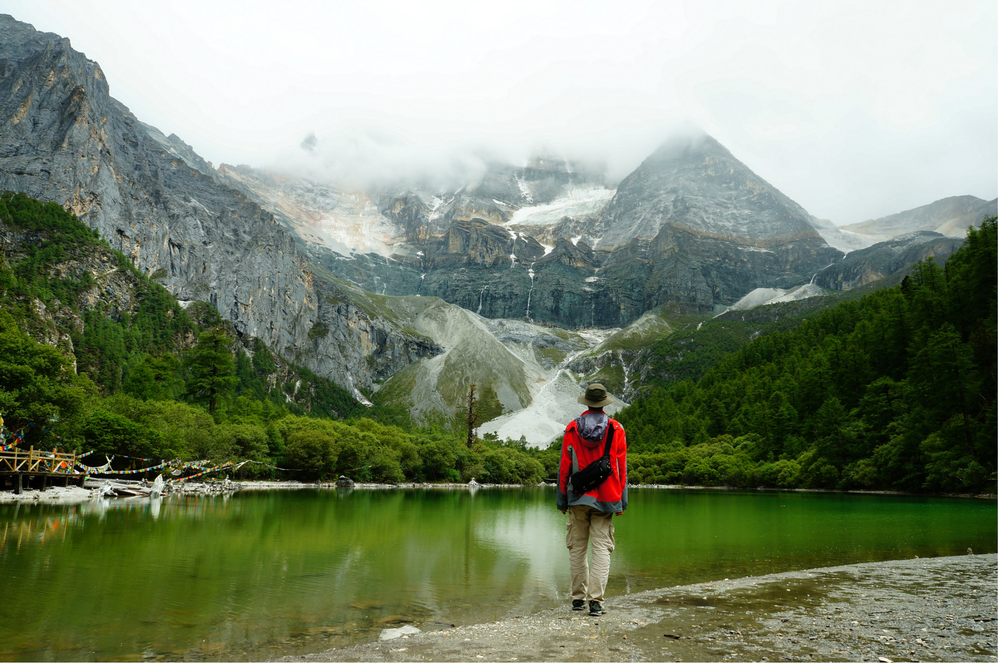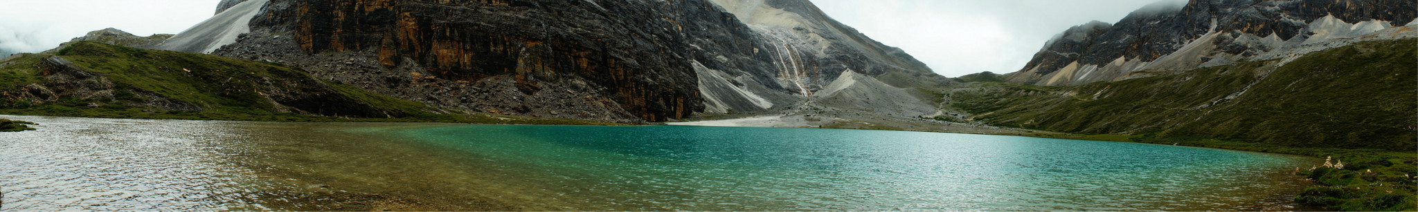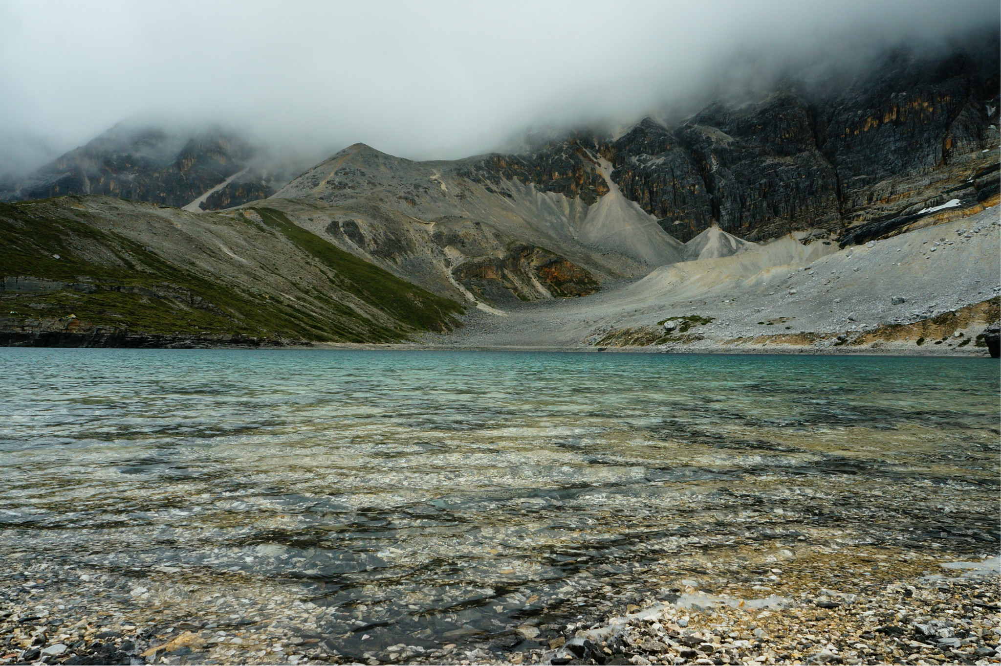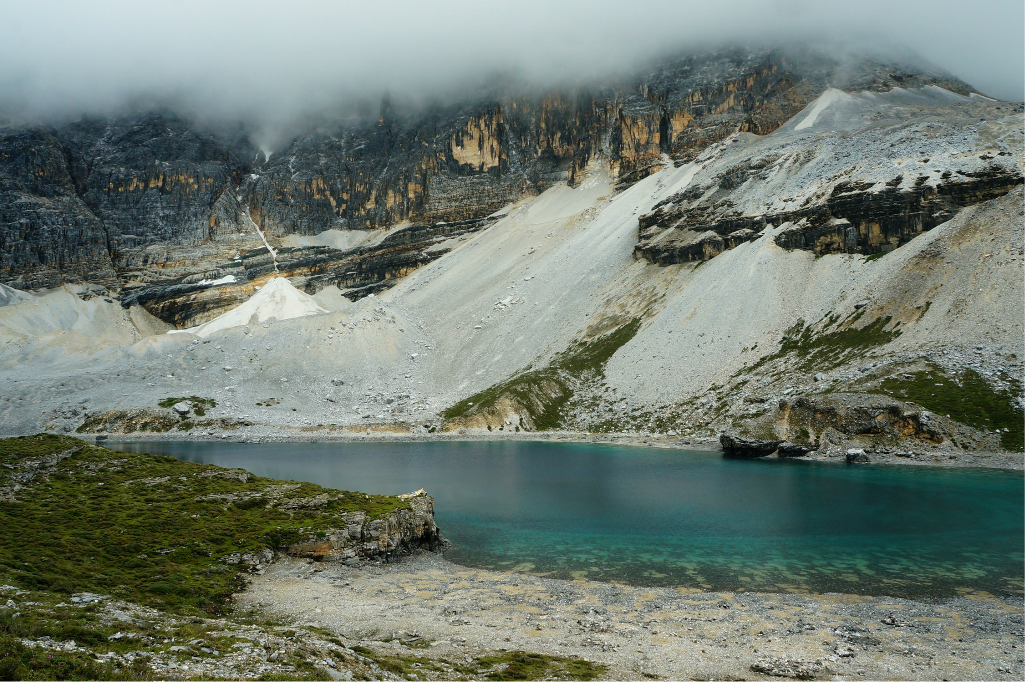 第 二天7点10分出发,脚踝依然肿胀疼痛,赶上旅社第二班班车,7:38到了登山道,8:33到了冲古寺,坐电瓶车8:58到达洛绒牛场,11:42到达牛 奶海。这段路很是不好走,山间小道,全是烂泥,各种马粪,上下坡道幅度比较大。我们三个跟路上结识的刚研究生毕业的李医生同行,我跟爬山李还算好,王肉跟 一刀大师后来是一点一点一步一步慢慢上来的,每一步都是超越极限。到了牛奶海后由于我脚踝疼痛,与一刀大师在山上订了下山的马匹,爬山李和王肉决定徒步下 山。因为爬山李他们的车下午四点就离开,他俩没呆多久就下山了。我跟一刀大师由于等马匹在五色海多呆了将近两个小时,其间有一会儿山上出了太阳,湖水呈现 出及其美丽的颜色,加上远处从云雾中显现出来的神山,当时我就觉得在山上这时间值了。