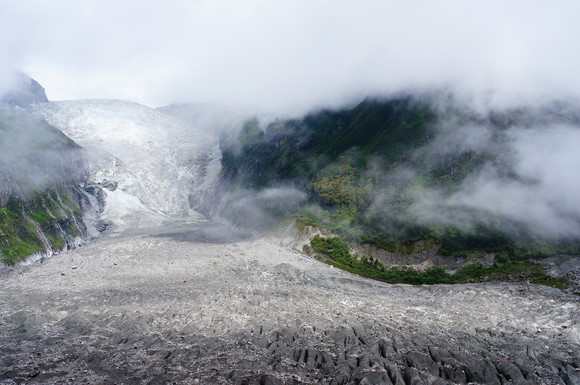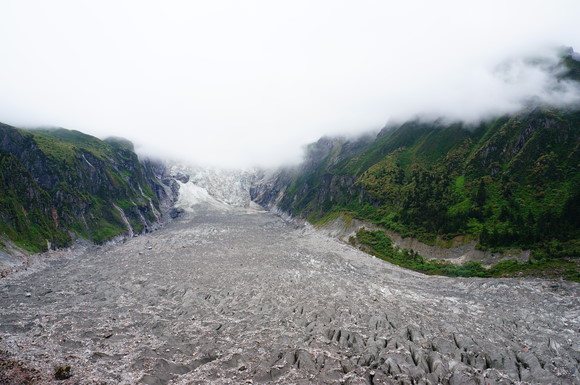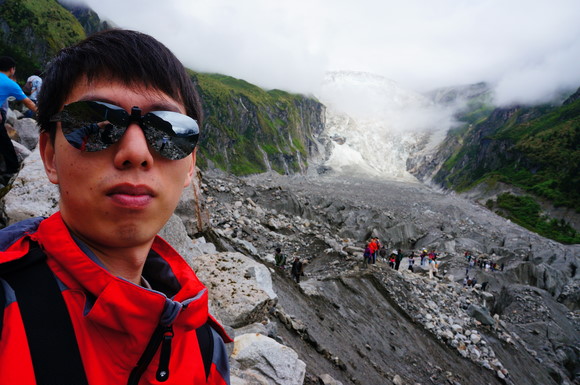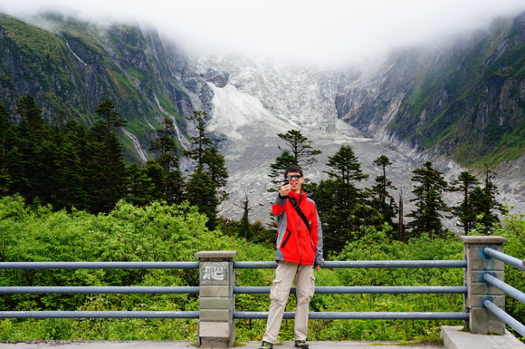 我们三个原路返回,爬到半路冰盖上云雾略微散掉一些,赶紧冲上观景台,还算赶的及时吧