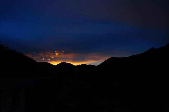 随后到达新都桥 ,吃完晚饭,我还在跟老板纠结我房间里面少个接线板没法用电热毯,说着说着抬头一看天边发亮