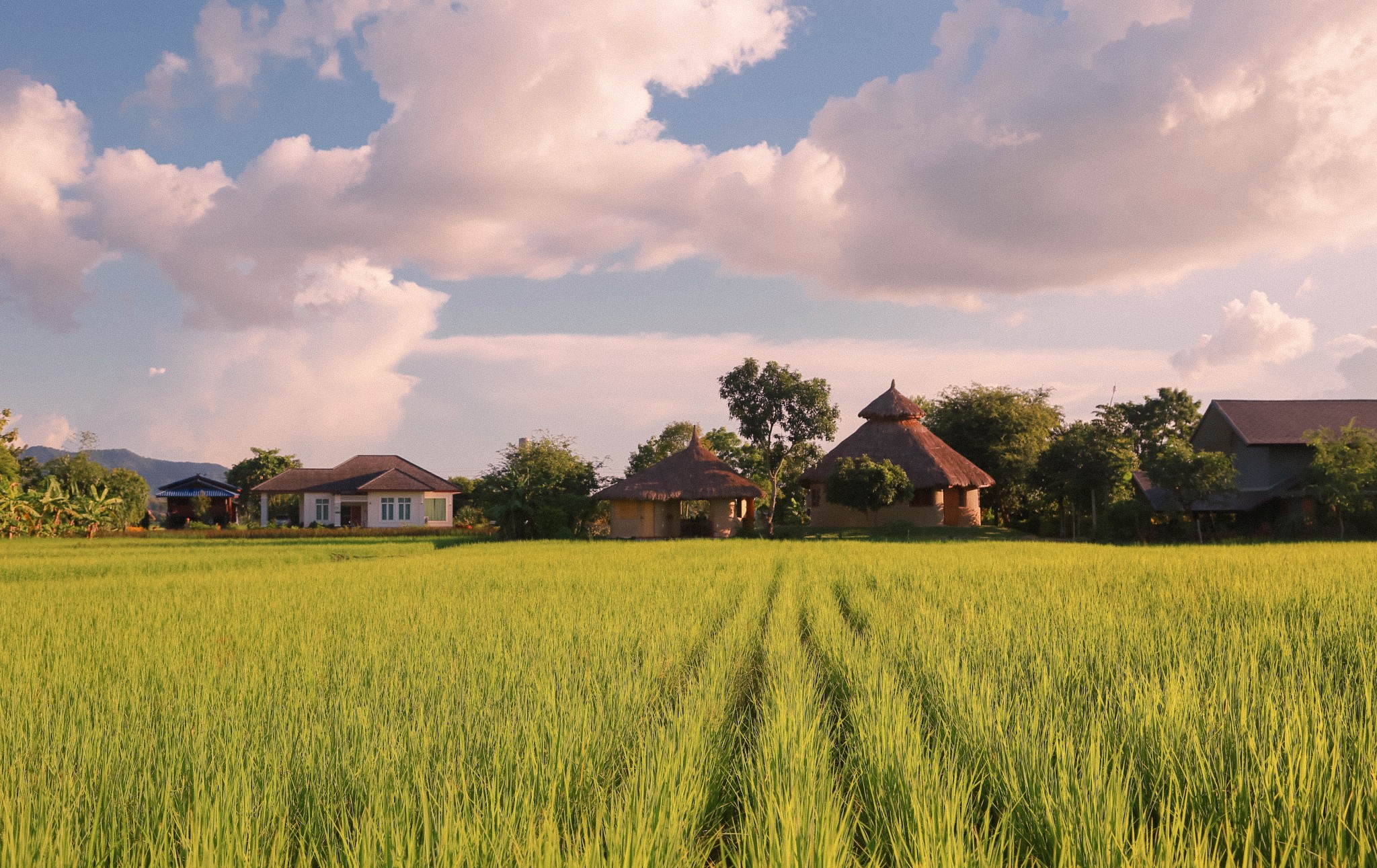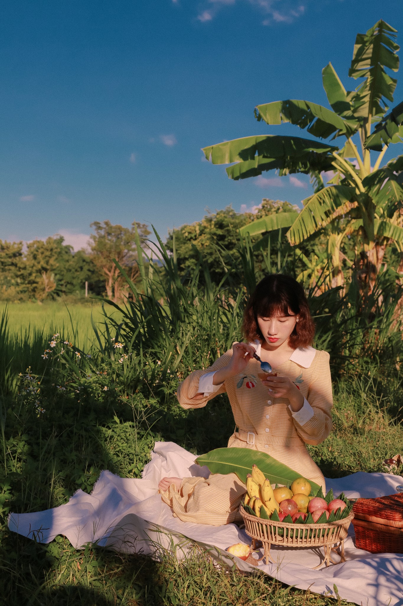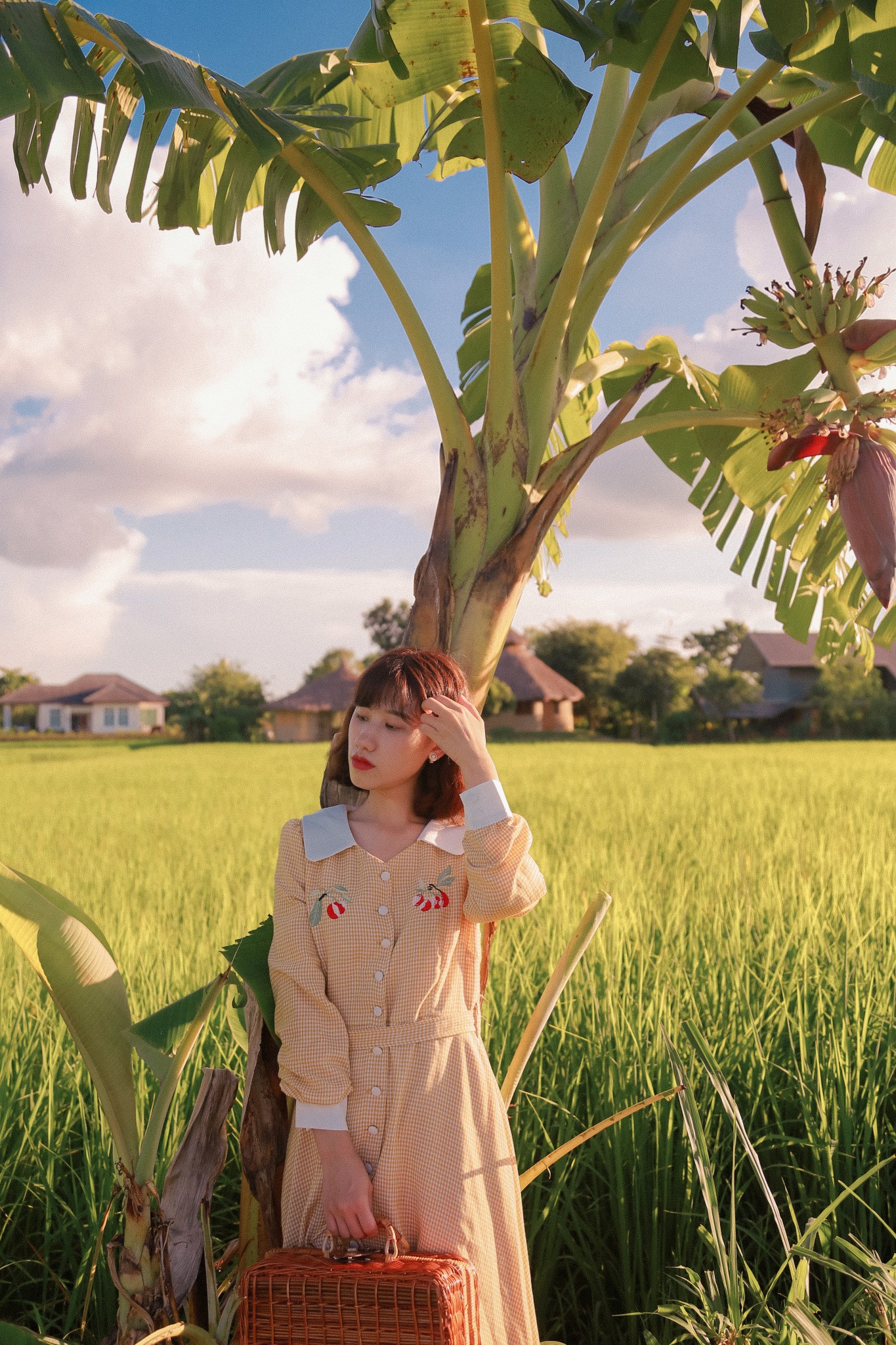 等到某一秒醒来的时候,气温已经不那么燥热,田野飘来独一份儿的稻谷清香,像极了少女在耳边的低语,轻轻的呼唤着,让我跟着她一同回到大自然的怀抱。洗了把脸,摇醒了Pom Pom,随手抓了一些水果,拉上他往远处的稻田奔去。