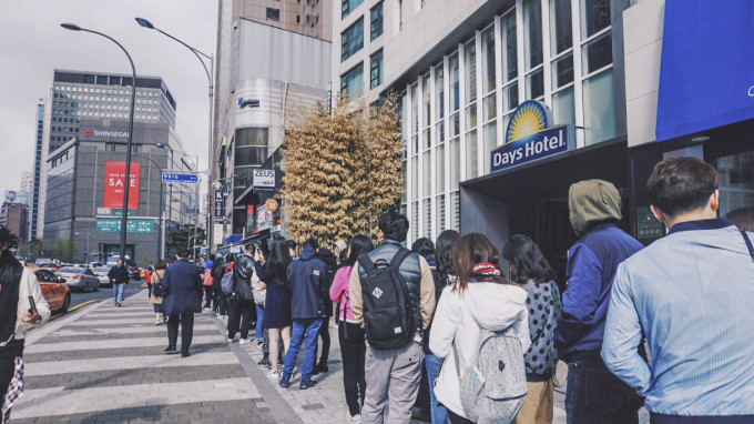 从民宿出来的对面是明洞地铁站,此时正值高峰繁忙的上班时间,看到有一条长长的队伍,凑了过去瞧了瞧。