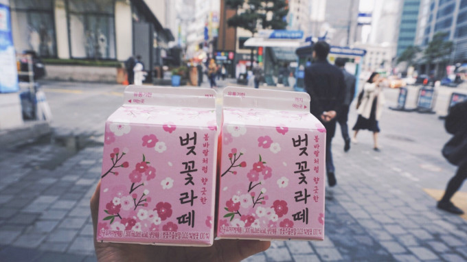 随便在便利店买了一个饭团和季节限定的樱花味牛奶,粗发去汉江公园赏花去。