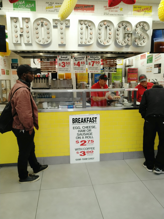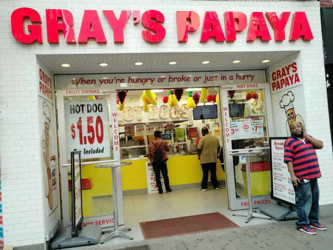 早上八点醒来,今天的行程是中央公园,大都会博物馆,帝国大厦。不过在解决行程之前先得解决早饭的问题,本来想去著名的网红汉堡shake shack的,没想到到了门口发现十一点才开门,只好决定先坐地铁去,没想到在路上偶然遇到了明天预定的早餐地,gray papaya,著名热狗老店,果断进入买了知名的special reception,味道还是很不错的。