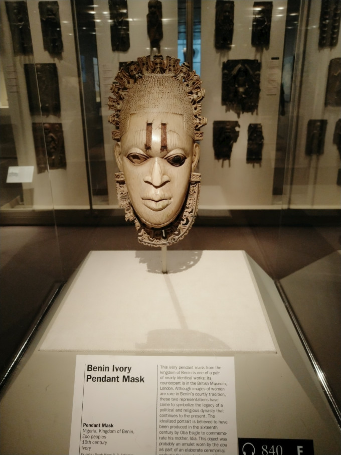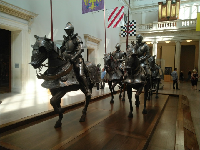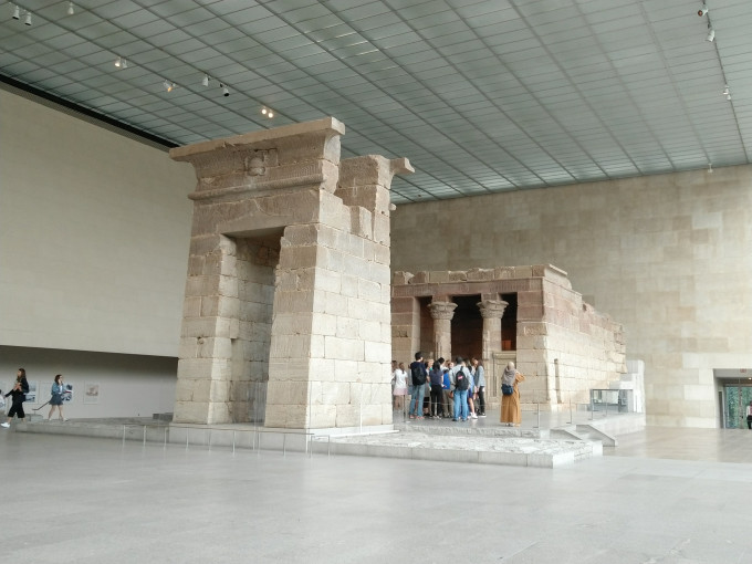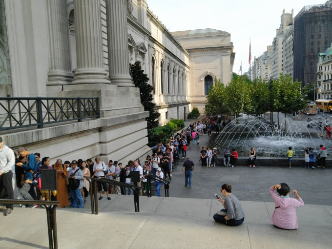 穿过中央公园后来到大都会博物馆,开馆时间是十点,却已经排了长长的队伍,只好排到了末尾,好在队伍虽长,但速度不慢,因为在马蜂窝已经买了电子票,进安检后就直接到group柜台换票,然后去旁边的柜台领取预定的中文导览器,这个中文导览器非常重要,因为大都会里面太大了,全部看根本来不及,而中文导览器里只翻译了各个馆的几十个精品,你只要跟着导览器顺序,就可以有重点的游览大都会了,即使这样也累的半死。