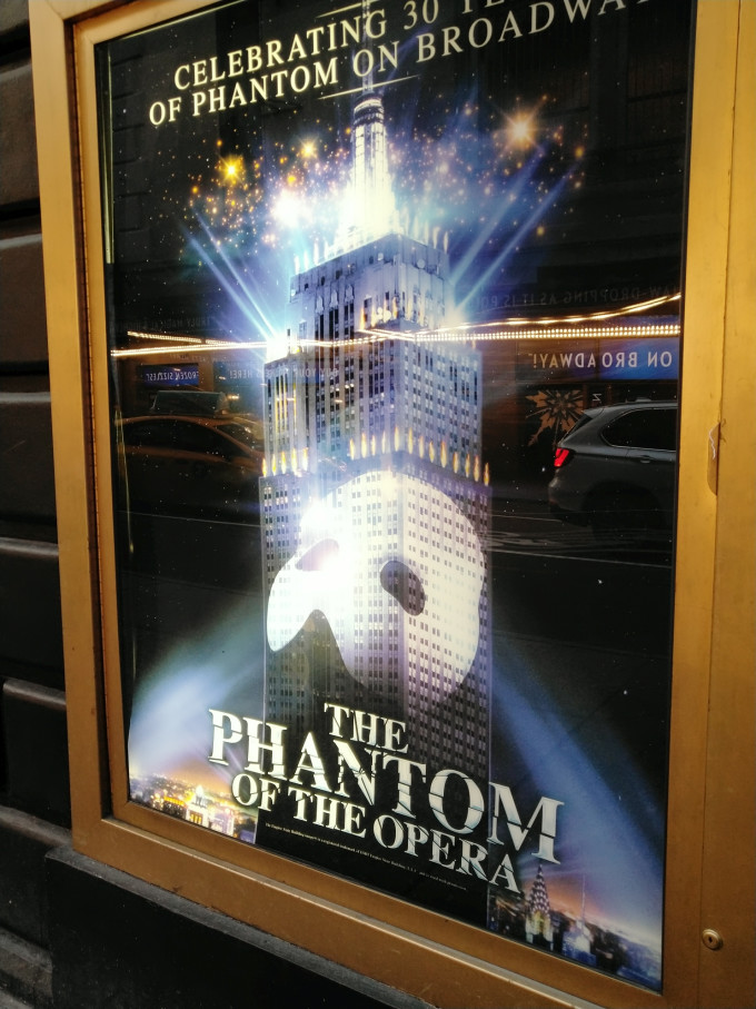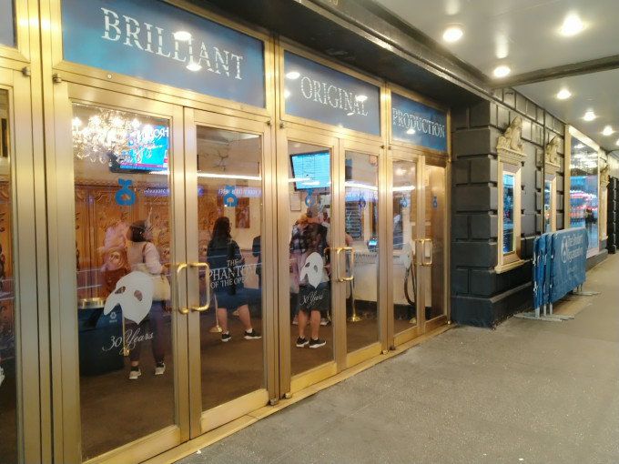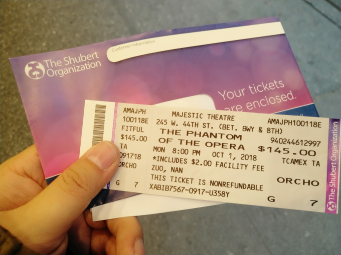 乘坐地铁出站二百米来到酒店入住,这里顺便说一句,纽约地铁线路很乱,站台也很不起眼,而且下面没有信号,乘坐时请提前查好并严格按照谷歌地图给你指示的路线乘坐,即使如此,我也总是做错,后来总结一个只要你往北走,就做uptown方向,往南走就做downtown方向,整理好东西,晚上的节目是看歌剧魅影,提前在马蜂窝买了庄严剧院的一等座电子票,手机里存了电子票照片,同时也打印了一份,这里遇到了第三个关卡,歌剧院的电子票是不能直接进的,需要先去剧院门口的售票处去换票,请切记要提前去换票,不然到时候你会被挤得欲哭无泪,我这是看了一位大哥的游记血的教训。下面就是剧院入口和换票处。