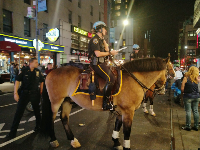 出来后,竟然还有美国女骑警维持秩序,大家纷纷照相,走回酒店睡觉,第一天结束了。
