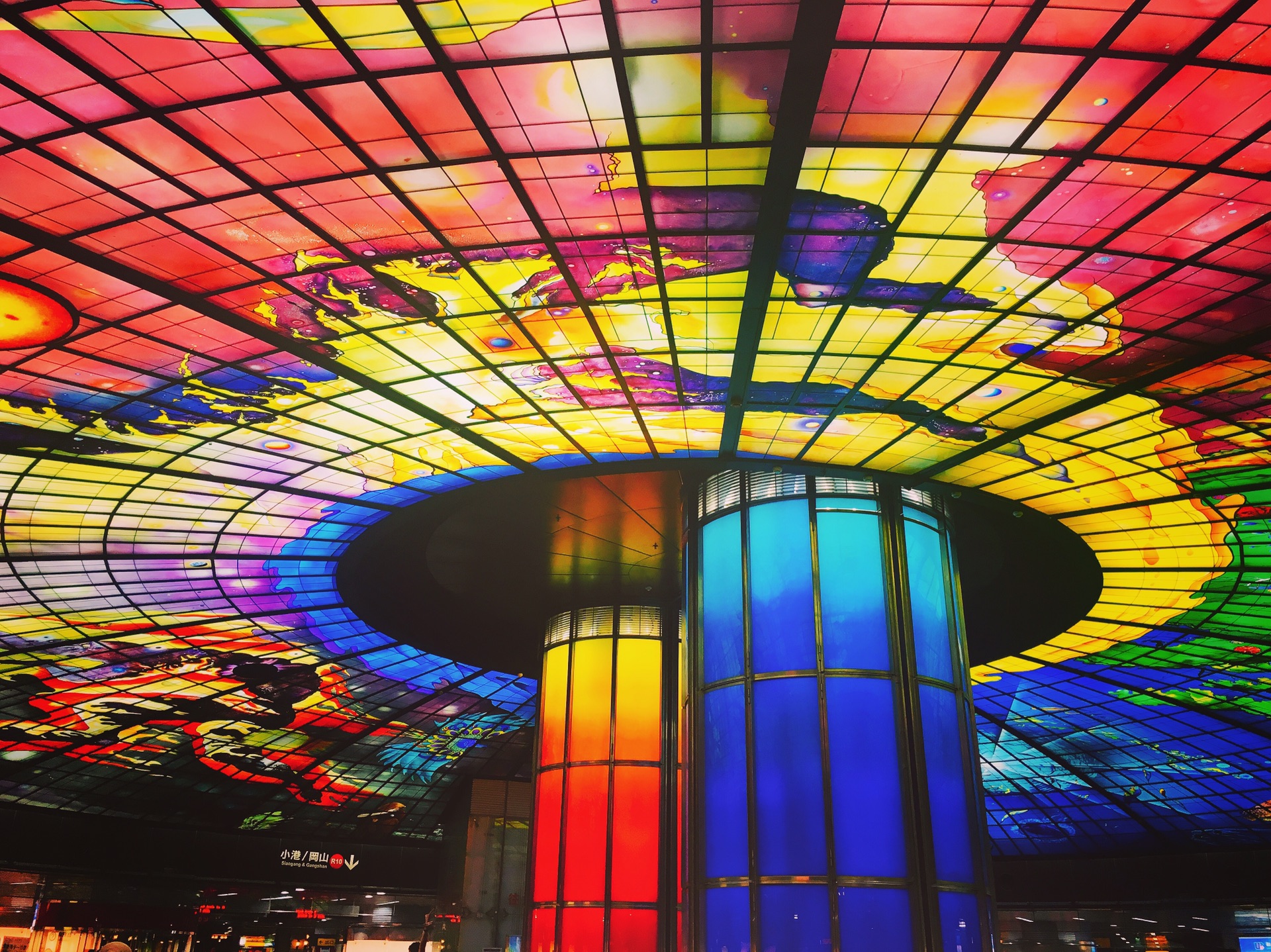 下了台铁后,直接搭捷运到美丽岛地铁站,不用出站到地下一楼穹顶大厅就能欣赏到最负盛名的光之穹顶。原作是水仙大师费时近4年完成的,然后由德国艺工根据原作1:1的比例进行制作的成五彩斑斓的穹顶。光绘与光影的效果在玻璃上呈现着,分为“水、土、光、火”主题,代表宇宙与自然界的轮回,传达了“爱与包容”的精神,把人在世界里,从诞生、成长、荣耀、到毁灭,而后重生的轮回过程用一幅图表达出来。美丽岛捷运站也因“光之穹顶”荣登了美国旅游网站BootsnAll“2012年最美地铁站”评选中位列第二名。