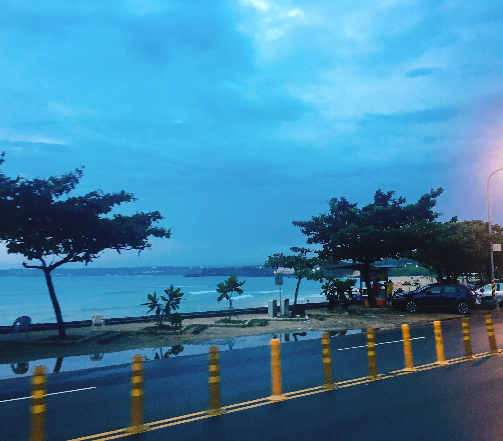 恰逢周日,楼下的小姐姐说恒春夜市只有周日才有,我们便乘着月色前往恒春。左手边是南湾,右手边是文艺的民宿,路上是整齐的椰子树,听涌动的海浪讲述垦丁最美的故事。