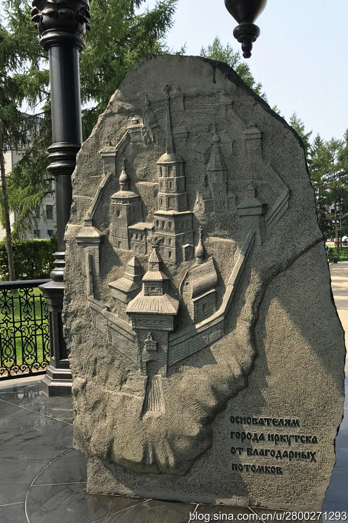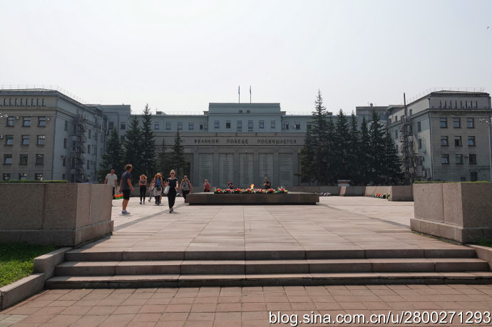 在伊尔库斯克,我们住宿在市中心的木屋里,每天一大早4点多钟,开始工作的有轨电车带着沉重的隆隆声从铁轨上碾压过去,用一种在我们记忆中早已逝去的沧桑之声把人从睡梦中唤醒。这座城市有着比莫斯科和圣彼得堡还要多的前苏联元素,从酒店出门走不远就到了列宁大街,街旁小广场上有一个列宁的全身塑像,据导游说这是全俄罗斯仅剩的3个列宁全身塑像之一,不知真假。与列宁大街垂直相交的是卡尔·马克思大街,这是伊市最繁华的商业街,大街两侧多是各个时期不同风格的欧式建筑,堪称露天建筑博物馆。导游把我们领到这条街主要是为了购物,所以没有好好观赏。不过这条街有一家陕西面馆,进去吃了一碗陕西臊子面,很正宗很好吃,而且价格也不贵,一碗面200卢布,也就是人民币18元多。面馆对面好像有个军事博物馆,院子里陈列着苏联时期的武器装备,有坦克、大炮、导弹什么的。州政府对面的二战胜利纪念广场,有纪念烈士的长明火和刻着烈士名字的纪念墙,还有牺牲于1945年二战胜利前夕的别洛博罗多夫将军塑像。导游说,二战时期伊尔库斯克虽然是后方,但是仍有21万人参军,其中5万人没有回来。时至今日,伊尔库斯克新人结婚都要到广场长明灯前献花怀念先烈。