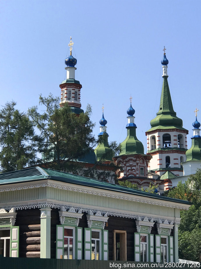 伊尔库斯克的教堂很多,有说是70多座,差不多是1万人就有一座教堂,大部分是东正教堂。喀山大教堂是伊市最大最美的东正教堂,外观鲜艳夺目,里面金碧辉煌。这是这里唯一让拍照的教堂,大主教的儿子在中国留过学,现在是伊市的导游,带中国团。我们去的那天刚好有受洗仪式,第一次近距离地目睹了婴幼儿受洗的全过程,场面宏大,很有仪式感。