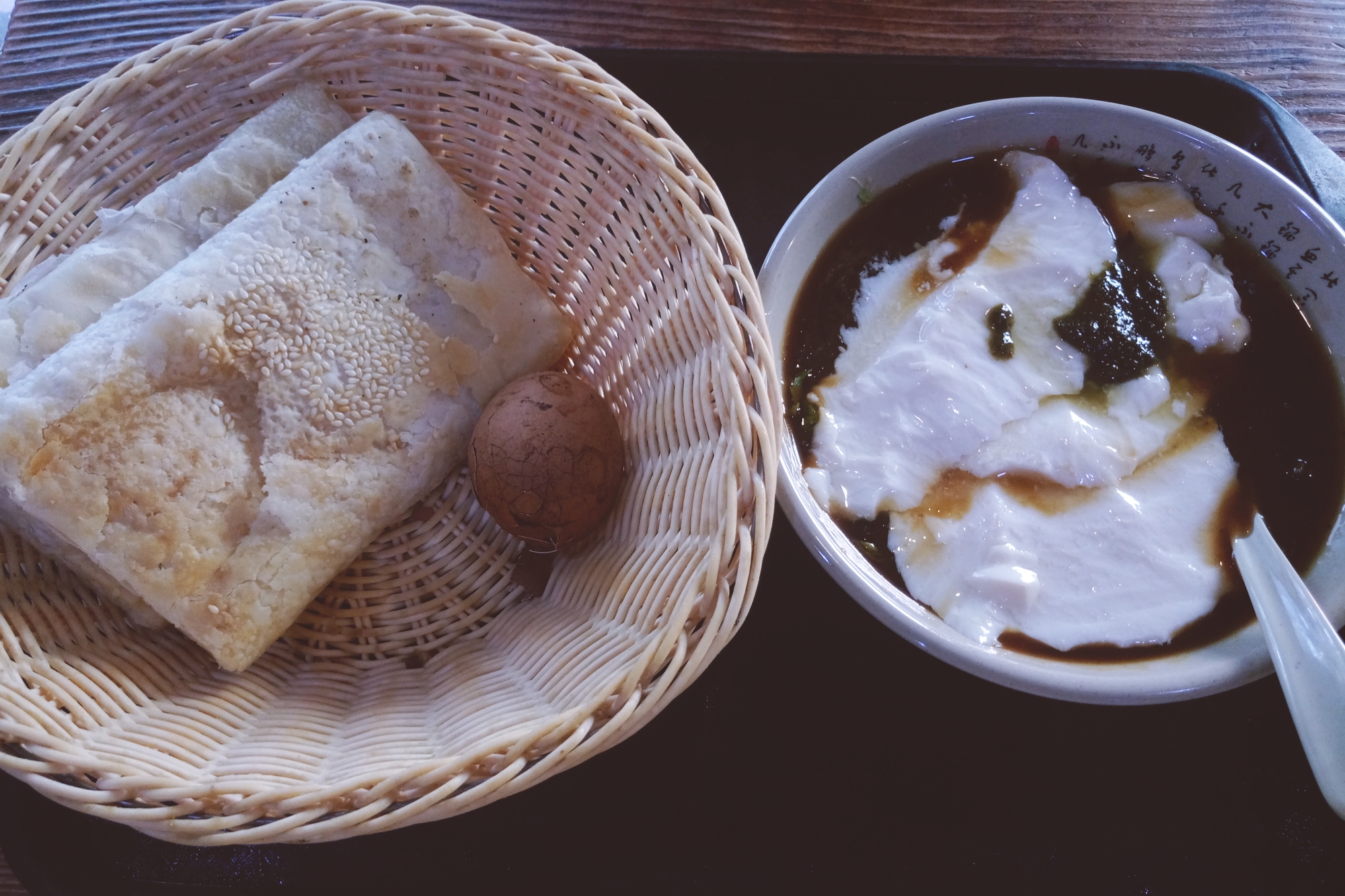 早饭吃的一家网红店 豆花果然名不虚传 太好吃了 “火烧”就是烤的白饼啊好吧