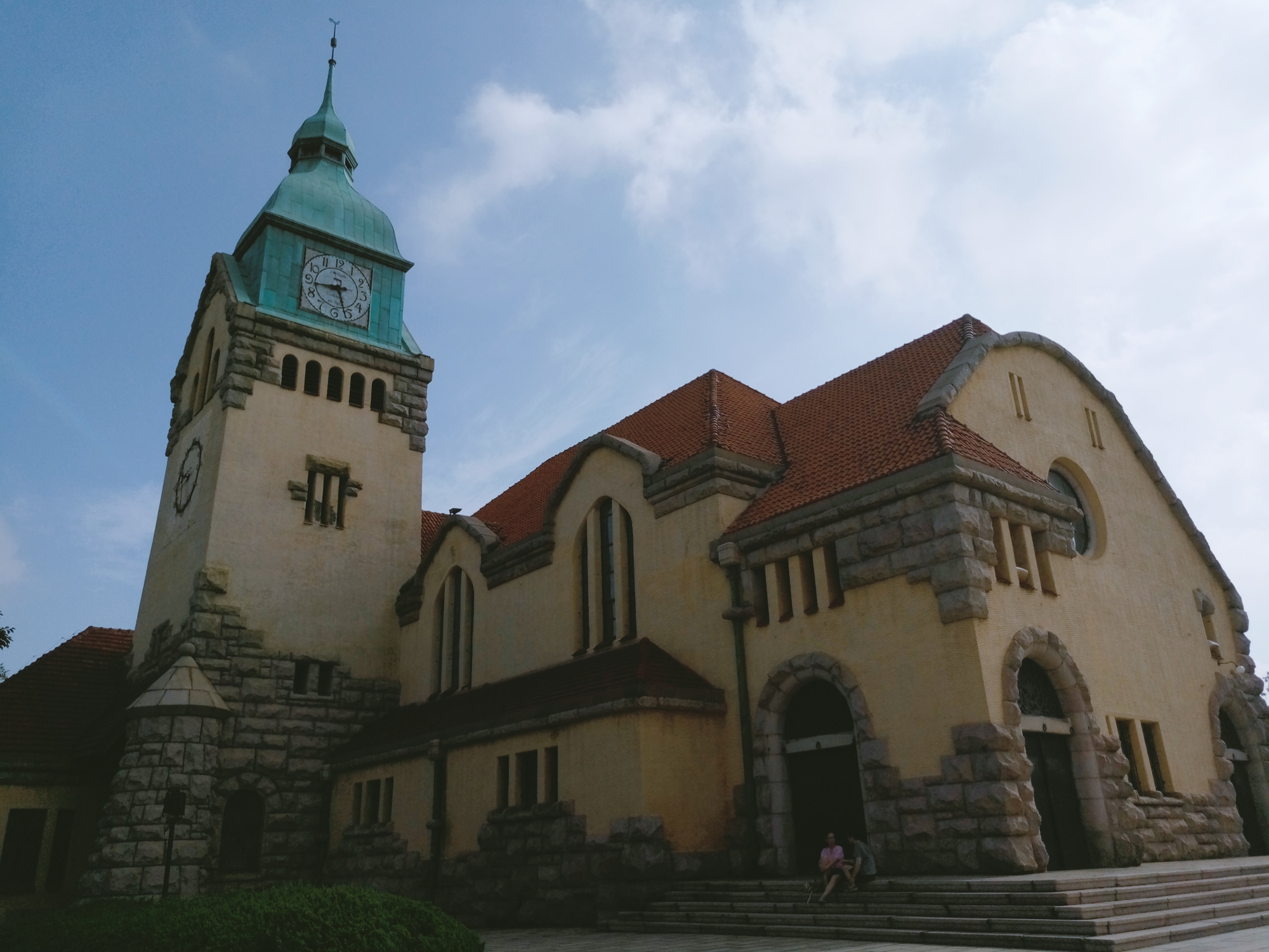江苏路基督教堂原名福音堂,也是青岛著名的宗教建筑,1910年10月落成,距今已有100 多年历史。