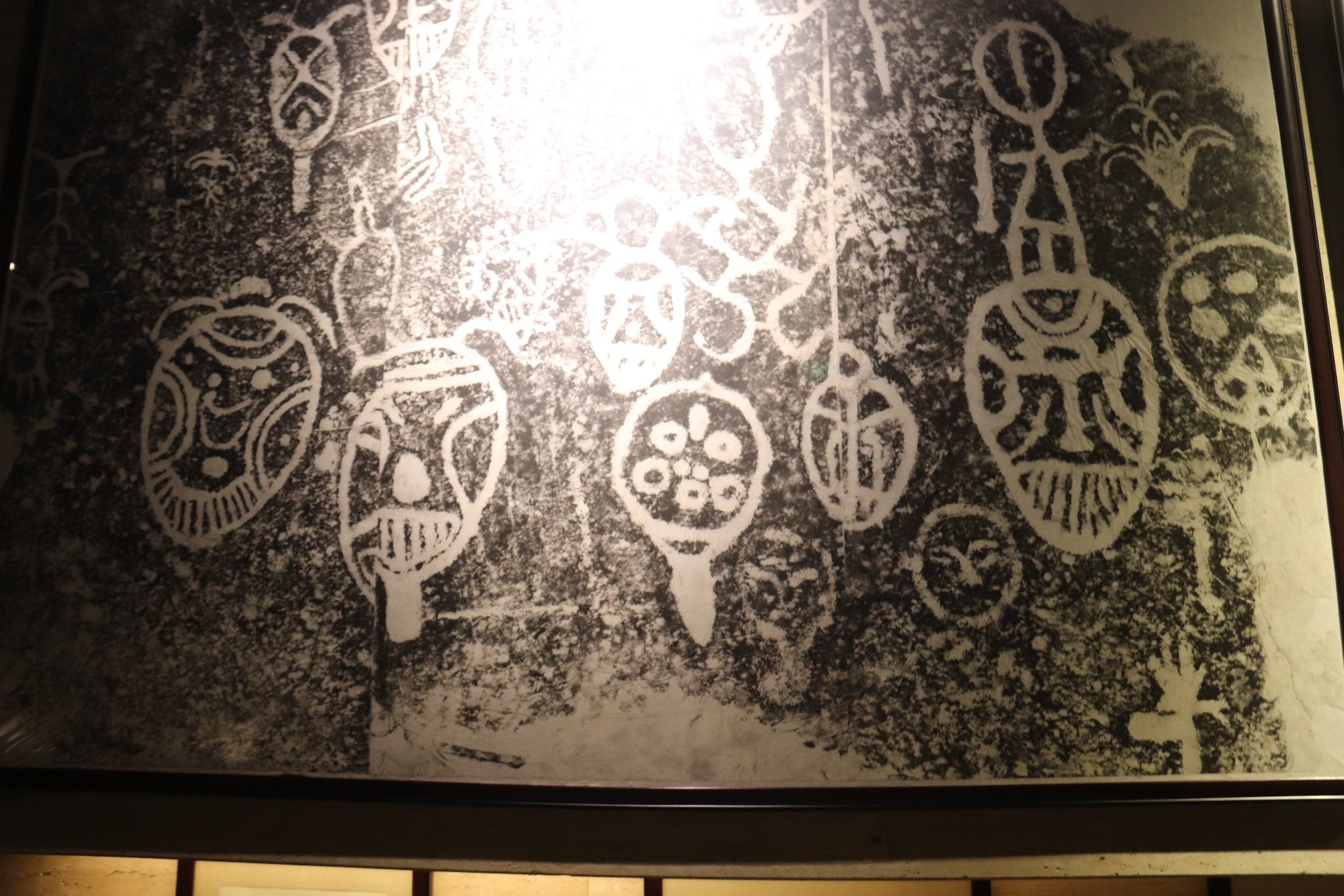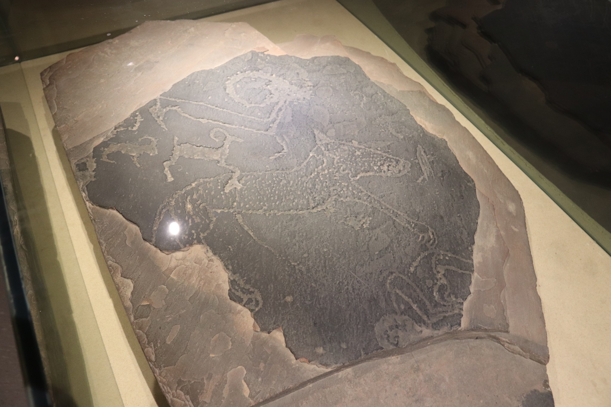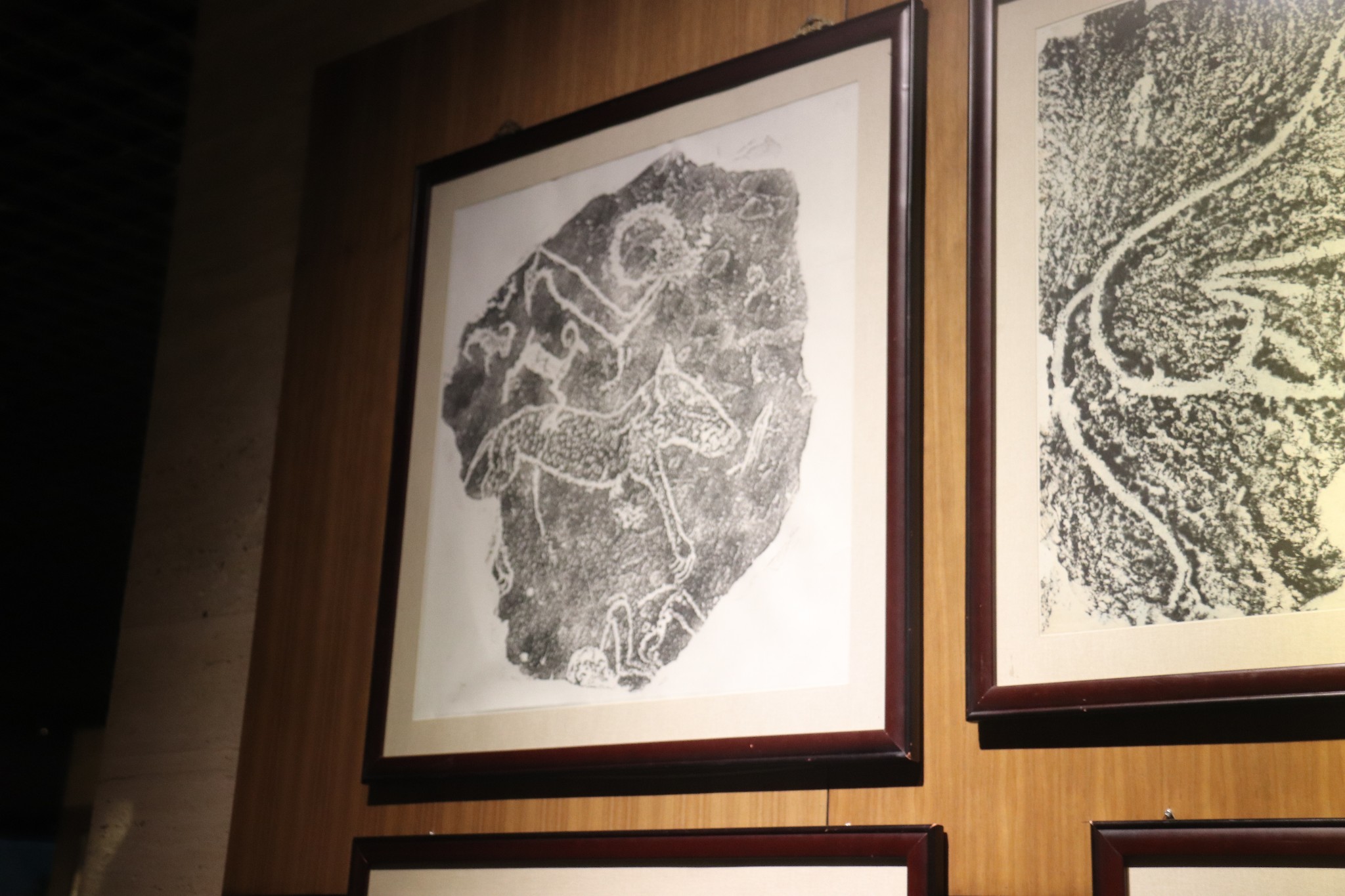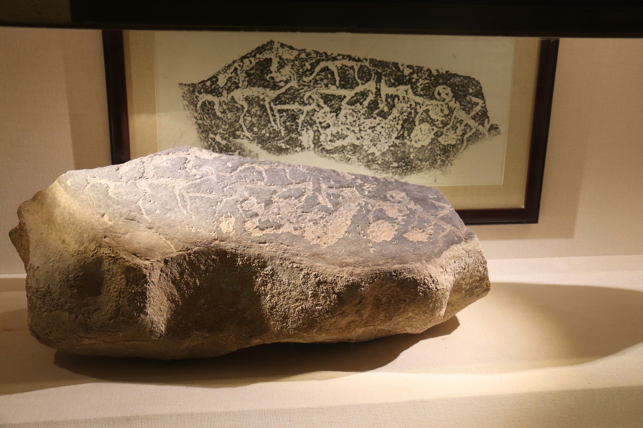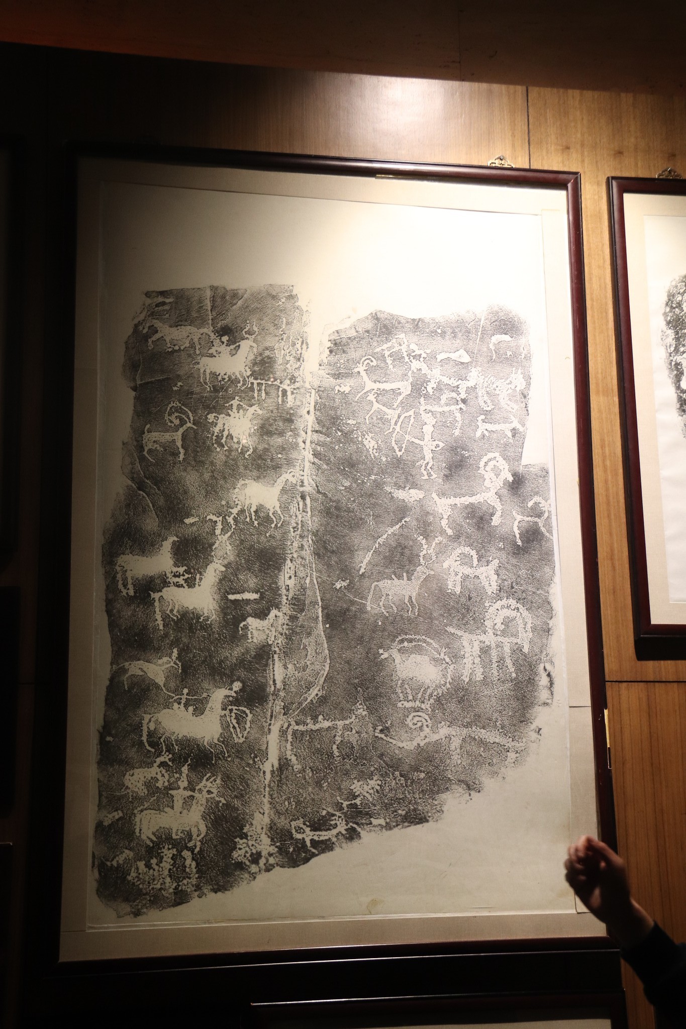 一楼唯一的常设展览是石刻史书,贺兰山岩画展厅。到这个展厅听下讲解员的讲解还是很有必要的。贺兰山脉上留存着中国最大的岩画群,根据学界主流意见,这些岩画产生于距今5000多年前,主要是距今5000-4000年前的作品。