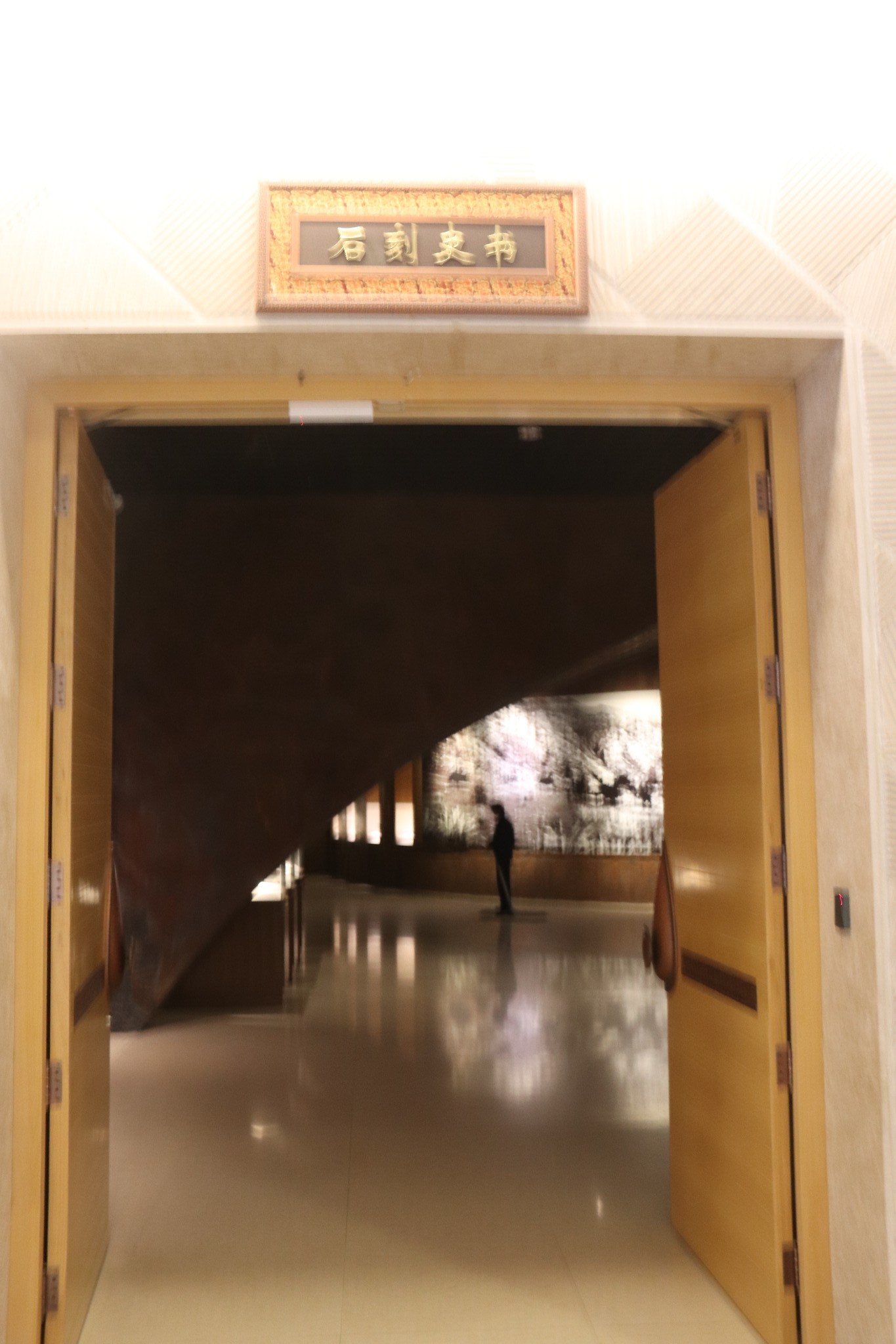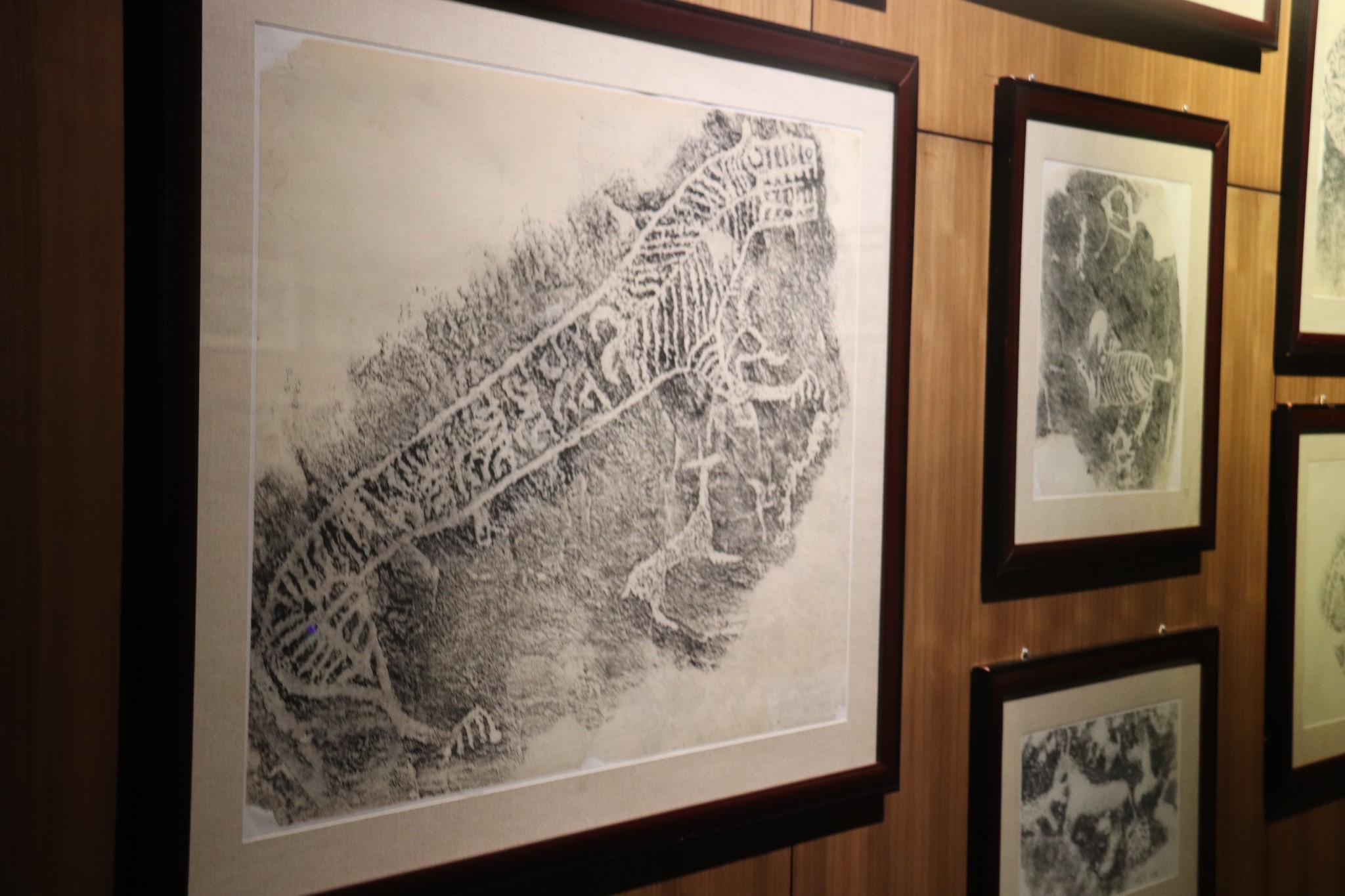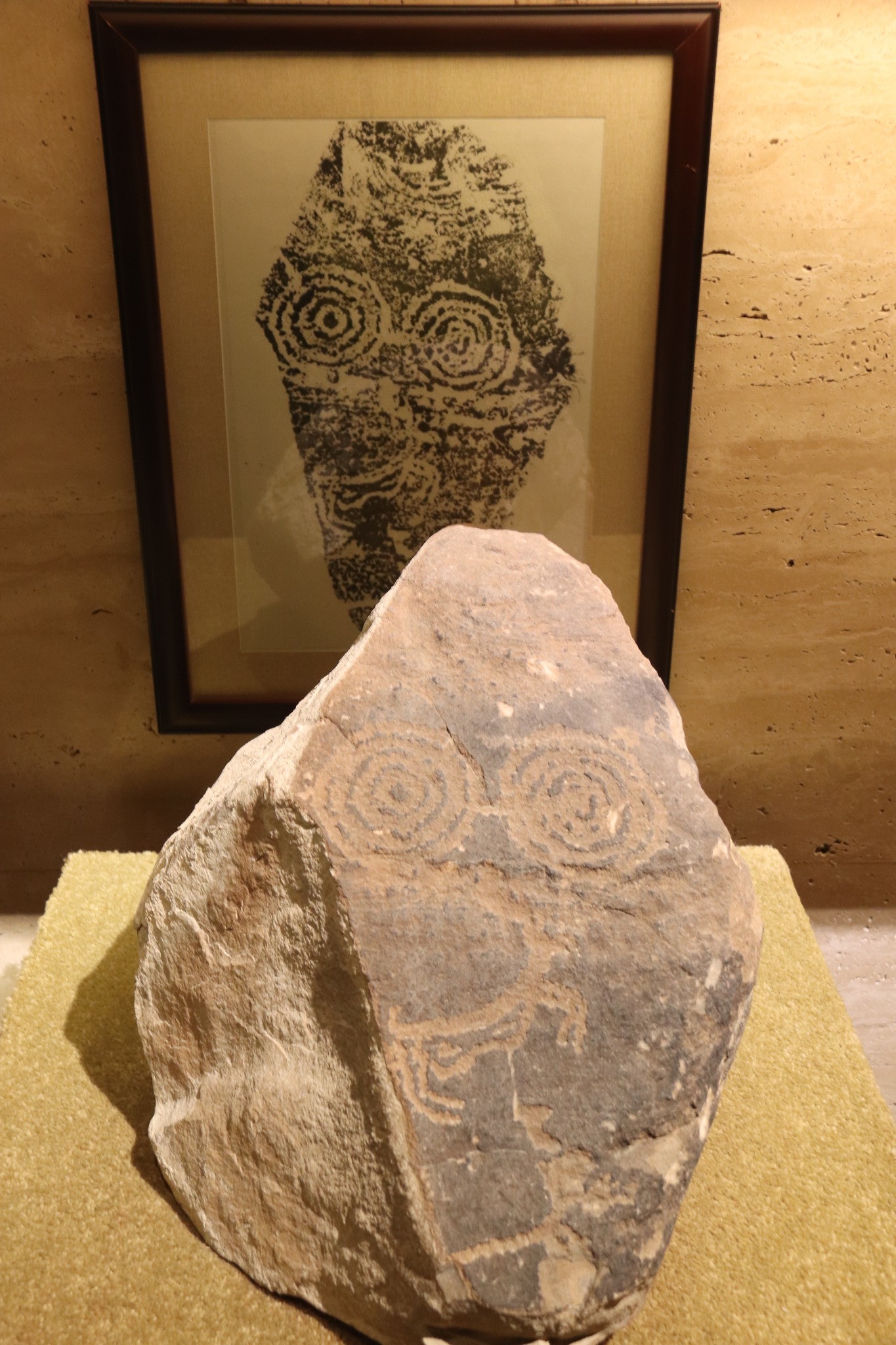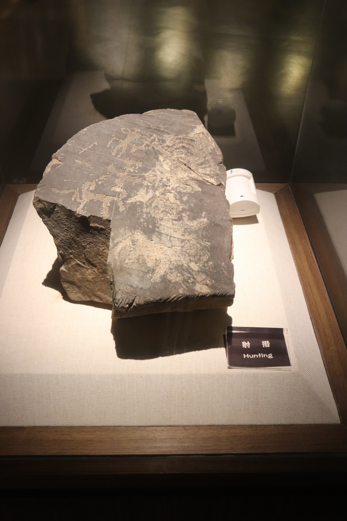 一楼唯一的常设展览是石刻史书,贺兰山岩画展厅。到这个展厅听下讲解员的讲解还是很有必要的。贺兰山脉上留存着中国最大的岩画群,根据学界主流意见,这些岩画产生于距今5000多年前,主要是距今5000-4000年前的作品。