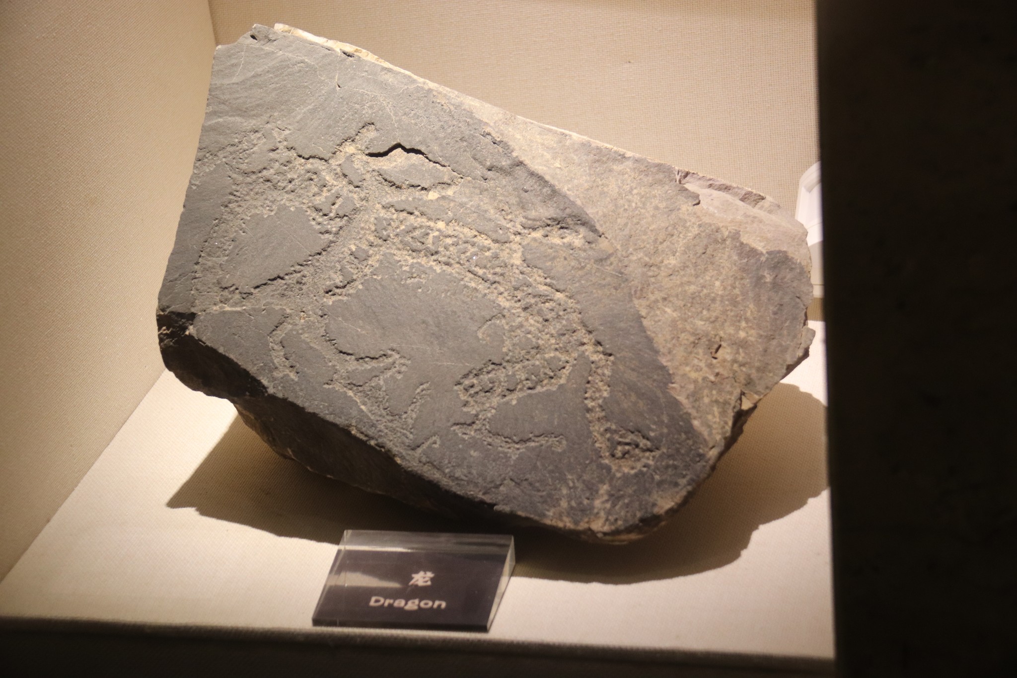 距今4000-5000年前龙的形象的岩画。当时每个部落都有自己的图腾,据说龙的产生是因为蛇部落特别强大,领导了其他以虎、鹿、牛等为图腾的部落,建立了部落联盟,为了联合联盟中的其他部落就发明了龙这一动物。龙岩画发现在贺兰山,可见当时龙不仅被中原汉族的祖先崇拜,也被北方游牧民族的祖先作为图腾来崇拜。
