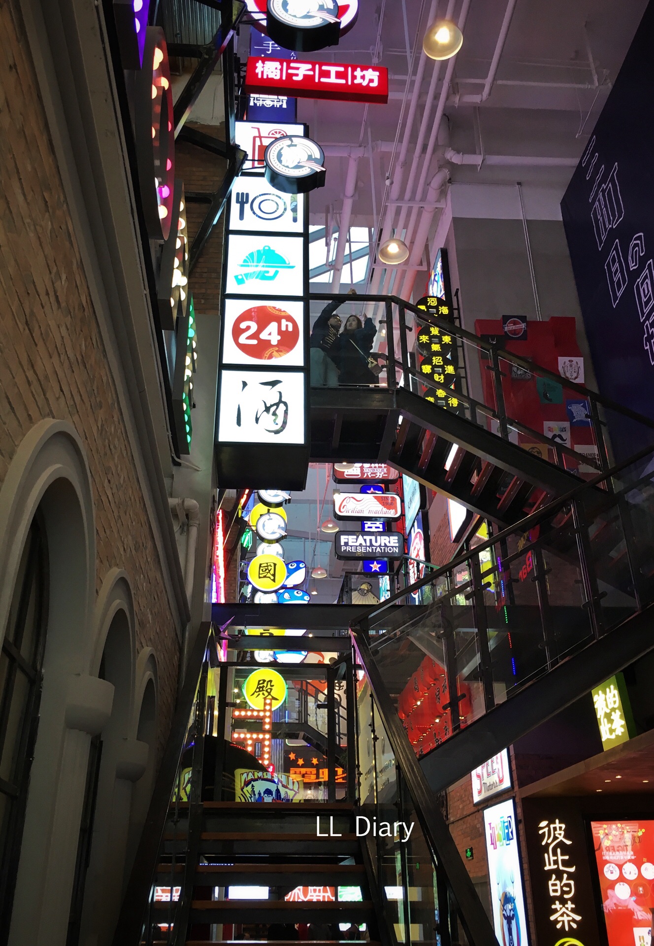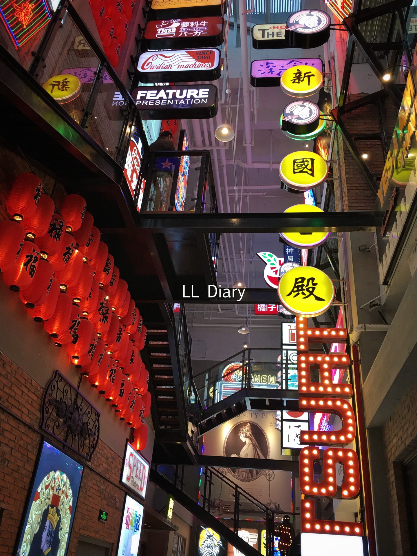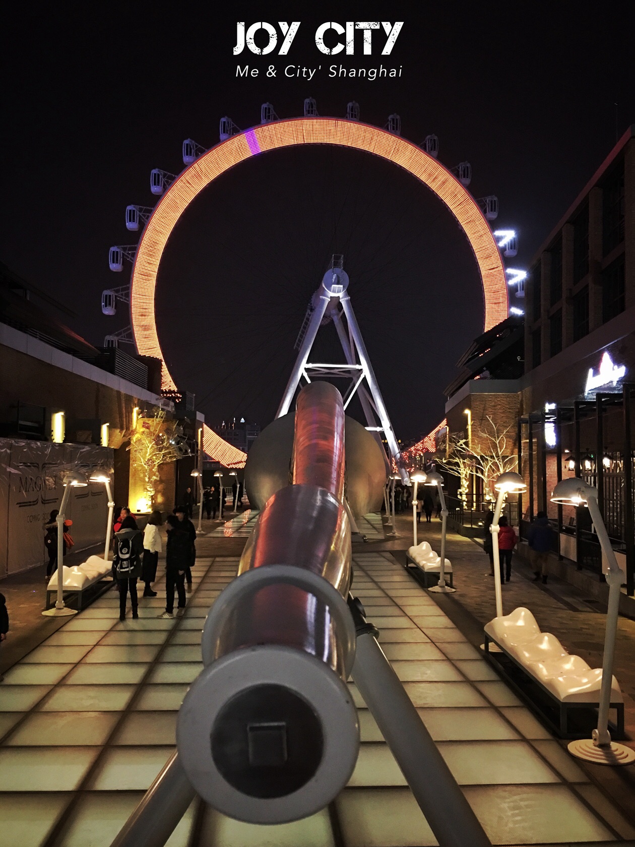 摩天轮也是相当出名,顶楼更有空中集市,逛累了有美食街玲琅满目的饭店以供挑选。美食街还是很适合拍照的所在。