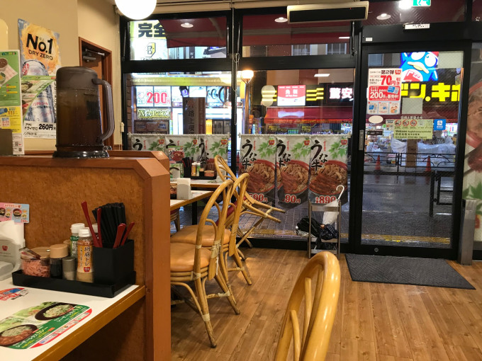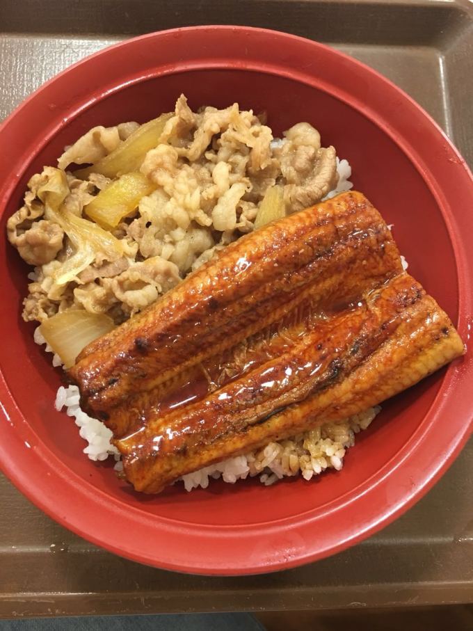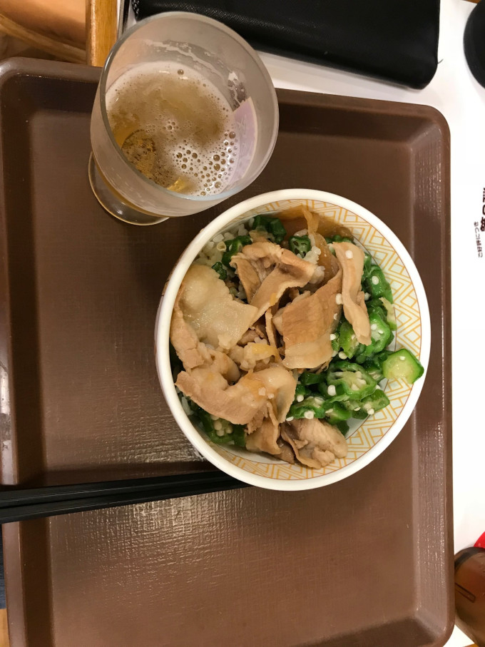 放了行李以后,出门不远有一家连锁快餐店すき家(读sukiya)这家和吉野家、松屋、饺子の王将一样,都是普通人常去的地方,以主打丼(盖饭)为主,7*24小时营业。我们各点了一份盖饭,价钱都在800-1000元(后面不特别说明的的话,都是指日元)左右。吃饭过程中,还来了两个明显是刚下班的日本劳动群众,都是默默点完饭,默默的吃完就走。