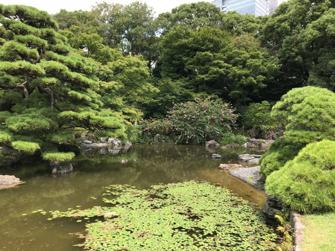 皇居东御苑位于千代田区,整个皇居被一条护城河所环绕,护城河外就是一个中央金融区,附近都是大型券商、银行扎堆的地方。东御苑有两三个门可以进出,我们从离地铁口最近的平川门进入。