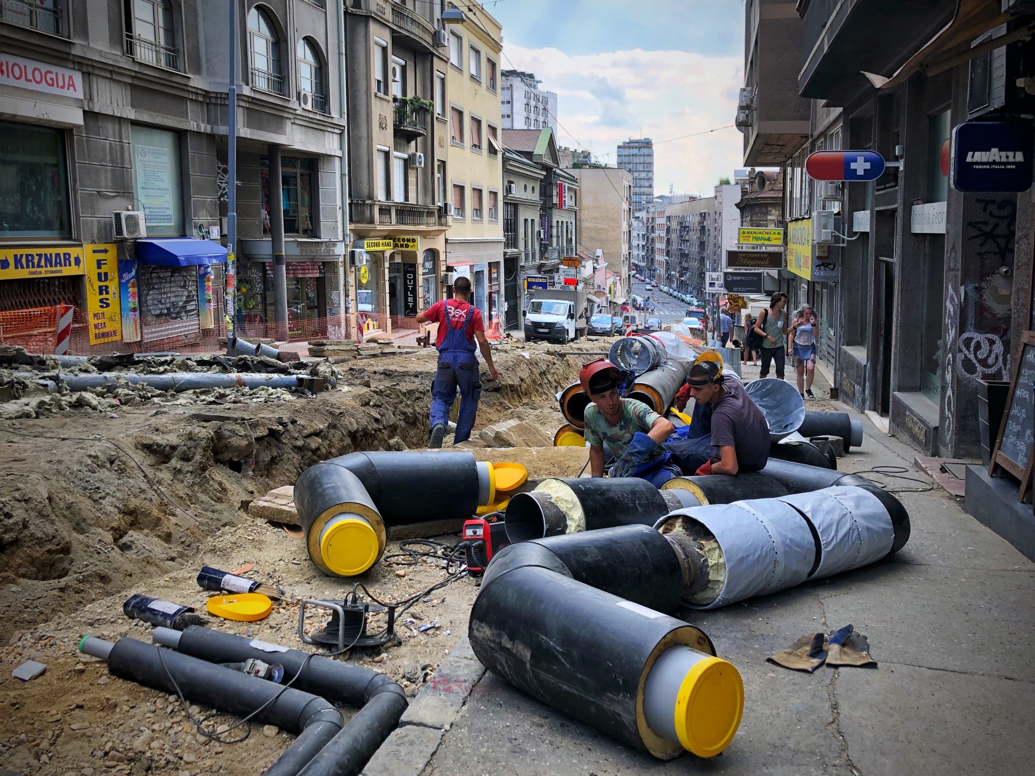 通往青旅的主干道几乎全程都在修路,铺沥青的机器和压路机左右开弓,整条街都乌烟瘴气的弥漫着浓重的柴油味。捂住口鼻快速通过一片一片的 “硝烟”,开一句不恰当的玩笑 —— 那种感觉让人觉得 “我可真不愧是在 ‘欧洲的火药桶’ 巴尔干!