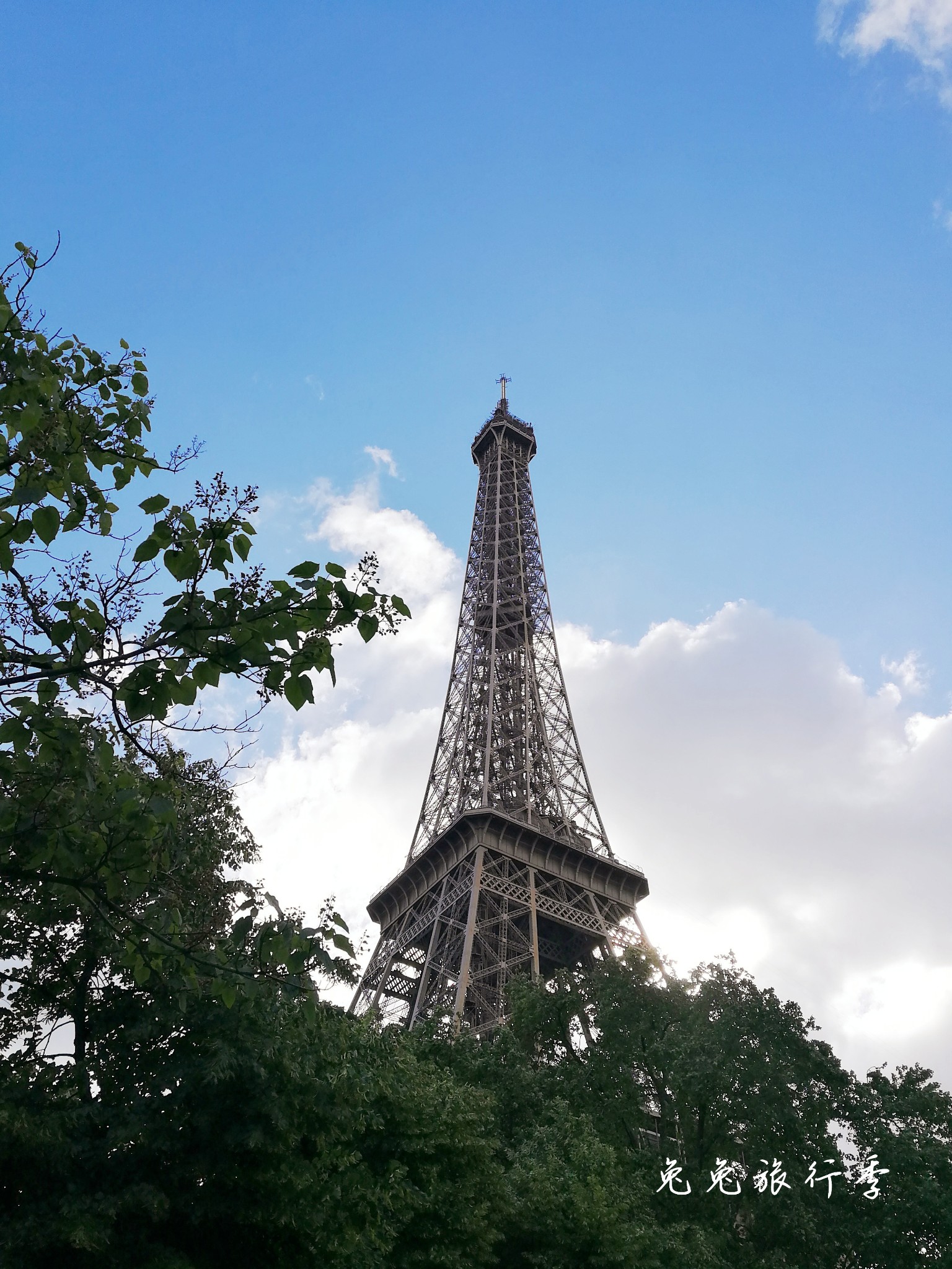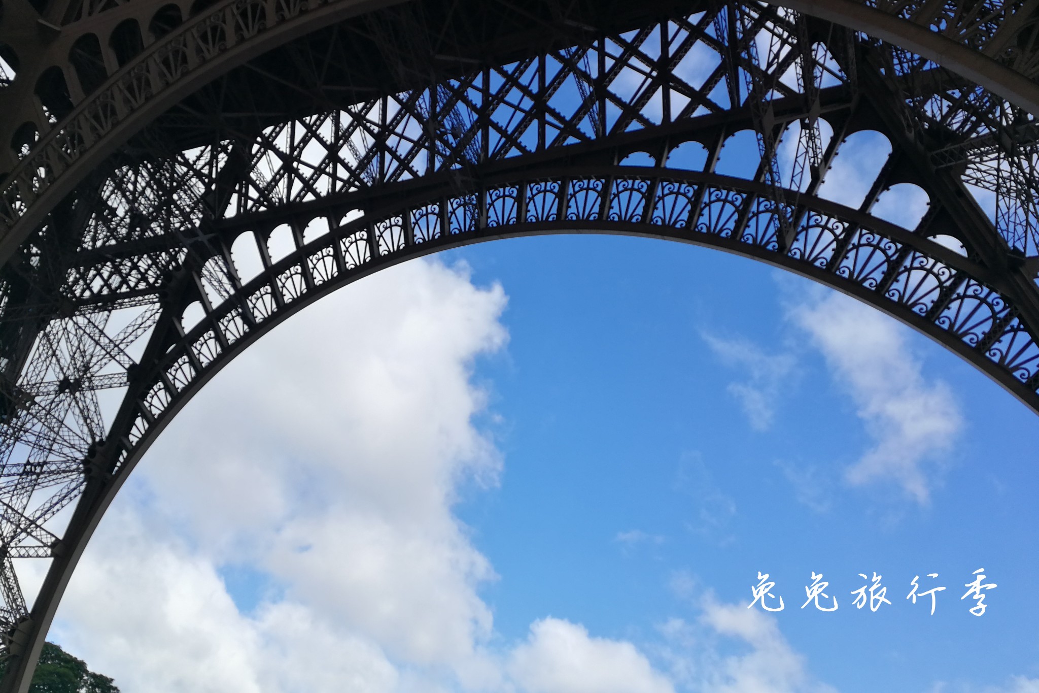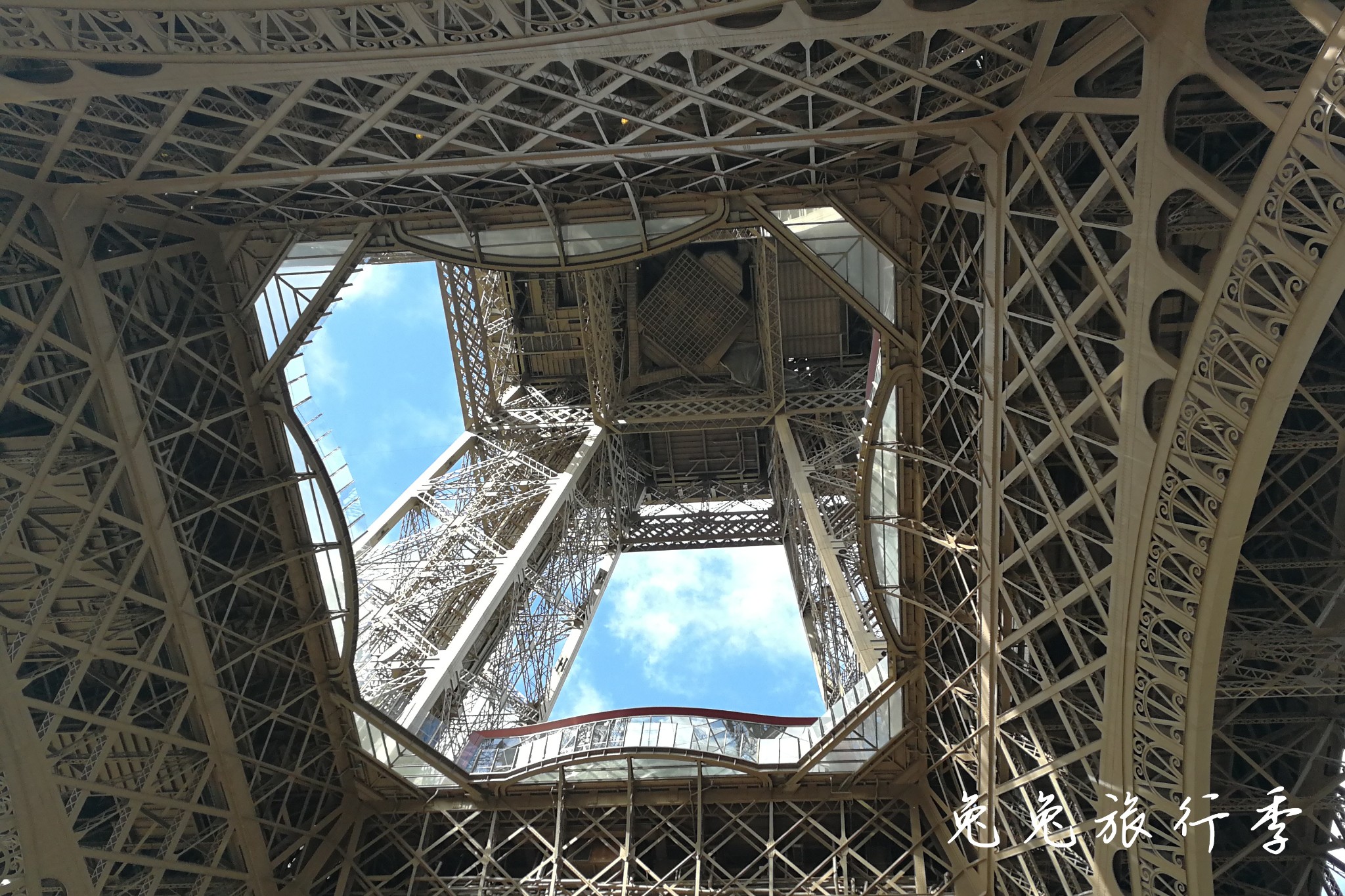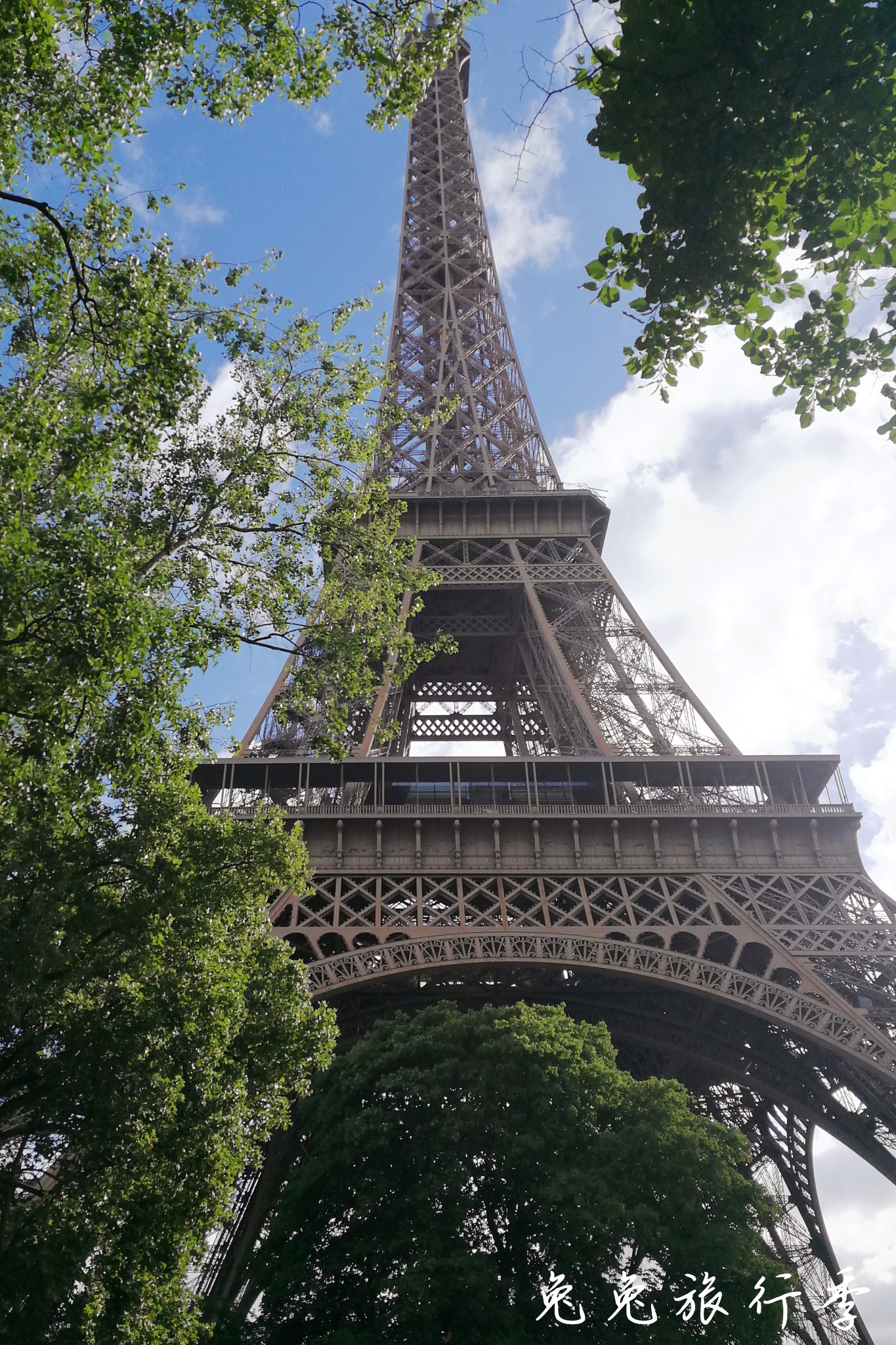不管上不上铁塔,每个到巴黎的人似乎都会和埃菲尔铁塔合个影,这个“钢铁巨人”已经成为巴黎的地标。旅行之前我在各路攻略中总结了几个俯瞰巴黎的地方,埃菲尔铁塔就是其中之一,所以就计划登塔,但提前预订门票时,淘宝上好多店的票都已售空,心想这个地方应该是旅游团的热门景点,买不上票就算了,改登凯旋门吧!但那天到达埃菲尔铁塔脚下时,还没有开门,有十几个人在排队,我们一看人不算太多,就跟着人群排队,过了一会安检,售票,居然没白早起,买上门票可以上去了。