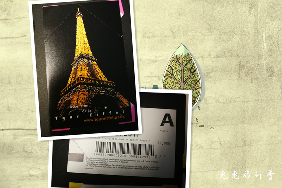 铁塔的门票,虽然是6月,巴黎温度也就20度上下,那天风特别大,所以我们觉得只上到二层就好了,票价11欧元。