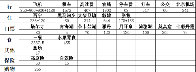 这个费用明细表,是以我和齐先森两个人所支付记录的,六人都差不多,有人多有人少,人均差不多5000块。高速费和我之前在百度查路线所显示的差不太多,所以这趟出行的人均在我们的预想之内。