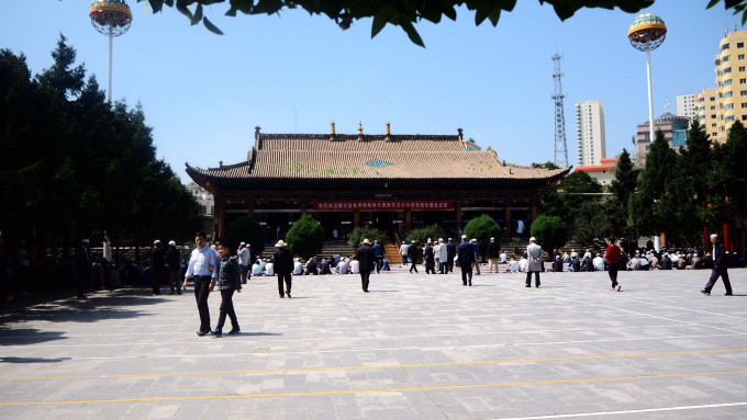 吃完饭我们就溜达着去东莞清真寺,路上碰到买德禄酸奶的,买了三瓶,挺好喝的,对我来说有一点点甜,但是王球球觉得正合适。